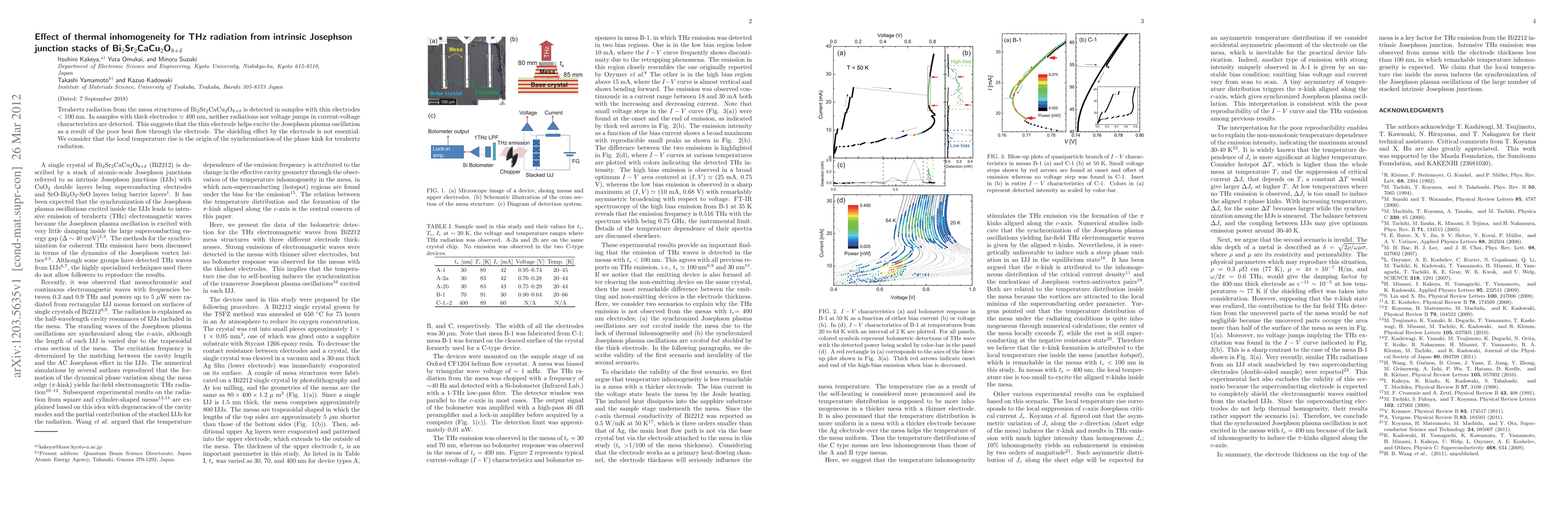 Terahertz radiation from the mesa structures of Bi$_2$Sr$_2$CaCu$_2$O$_{8+\delta}$ is detected in samples with thin electrodes $< 100$ nm. In samples with thick electrodes $\simeq$ 400 nm, neither radiations nor voltage jumps in current-voltage characteristics are detected. This suggests that the thin electrode helps excite the Josephson plasma oscillation as a result of the poor heat flow through the electrode. The shielding effect by the electrode is not essential. We consider that the local temperature rise is the origin of the synchronization of the phase kink for terahertz radiation.