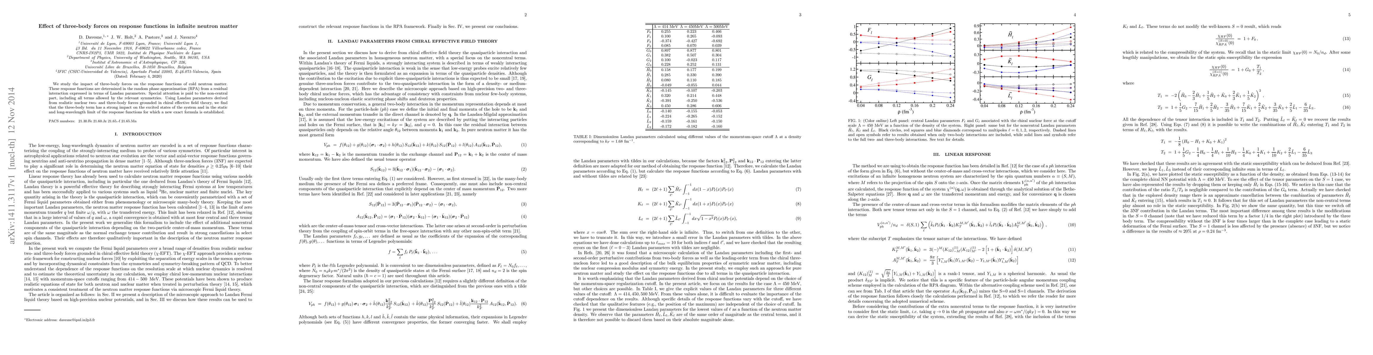 This paper investigates how three-body forces influence response functions in cold neutron matter, determined via the random phase approximation. It reveals that these forces significantly affect the system's excited states and static response functions, with a new exact formula developed for the long-wavelength limit.