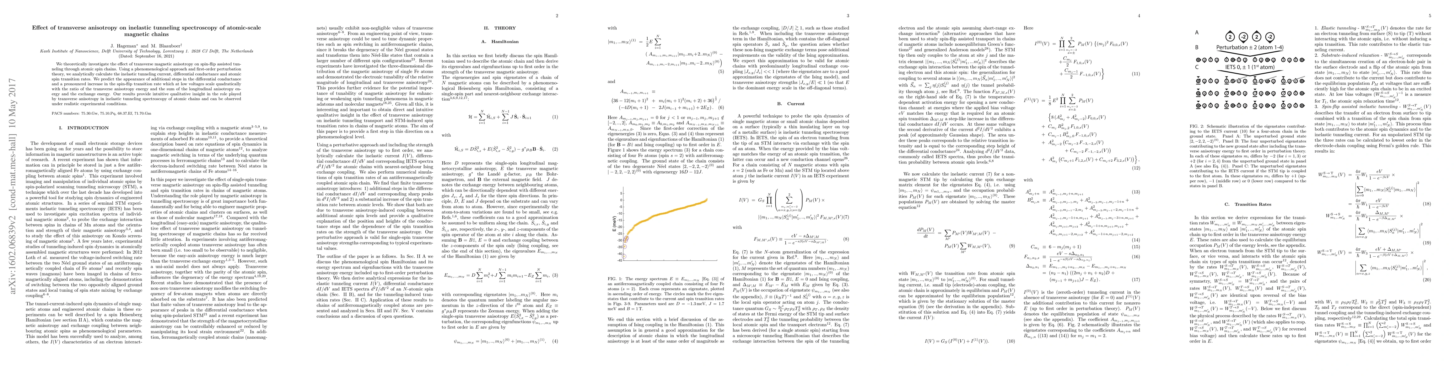 This paper theoretically explores how transverse magnetic anisotropy influences spin-flip assisted tunneling in atomic spin chains, predicting enhanced spin-flip transition rates and additional steps in differential conductance, with implications for inelastic tunneling spectroscopy.