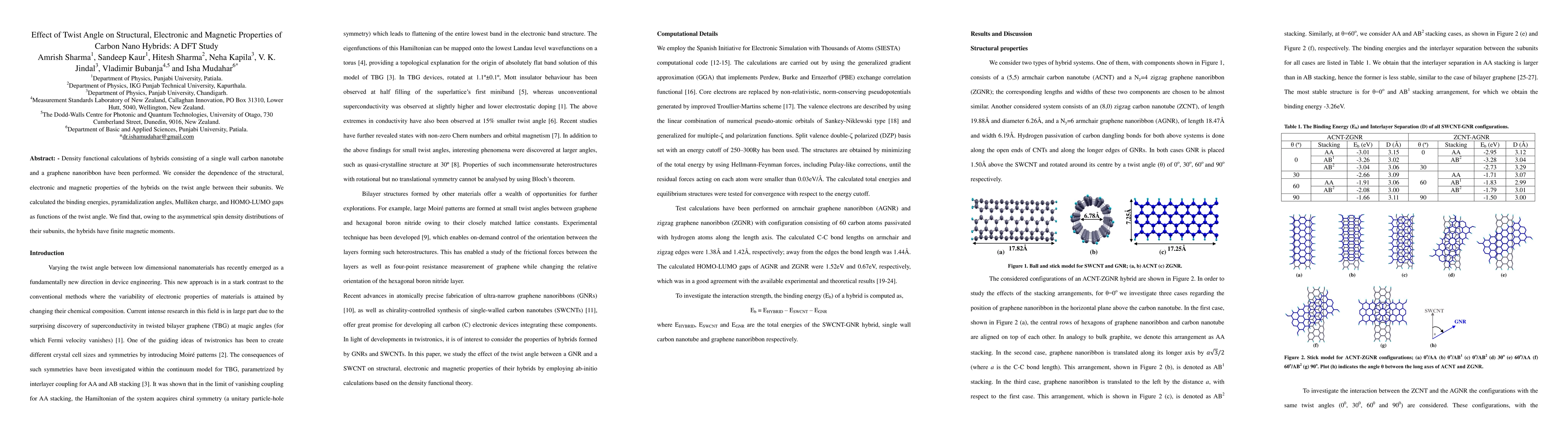 This DFT study explores how twist angle affects the structural, electronic, and magnetic properties of carbon nano hybrids made of a single wall carbon nanotube and a graphene nanoribbon. Key findings include variations in binding energies, pyramidalization angles, Mulliken charge, and HOMO-LUMO gaps with twist angle, along with finite magnetic moments due to asymmetrical spin density distributions.
