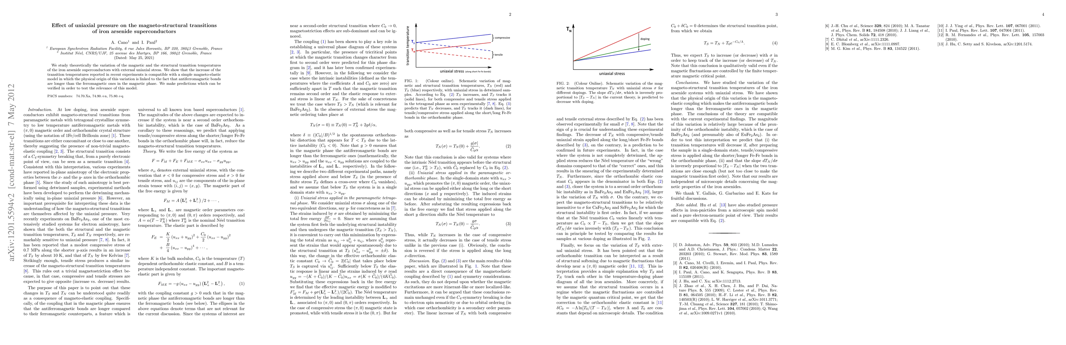 This paper theoretically investigates how uniaxial pressure affects the magnetic and structural transition temperatures in iron arsenide superconductors, proposing a magneto-elastic model to explain the observed increase in transition temperatures due to differences in bond lengths between antiferromagnetic and ferromagnetic phases. The study makes testable predictions to validate this model.