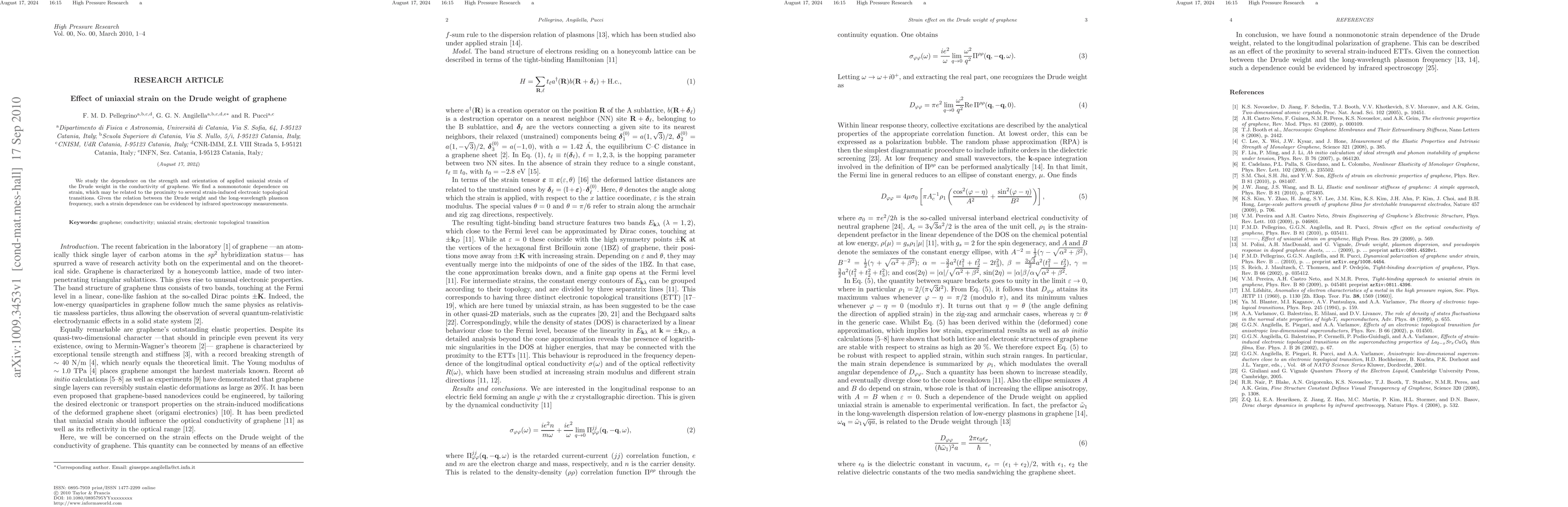 A new approach was developed to calculate the Drude weight of graphene under uniaxial strain, which provides a more accurate understanding of its optical properties.