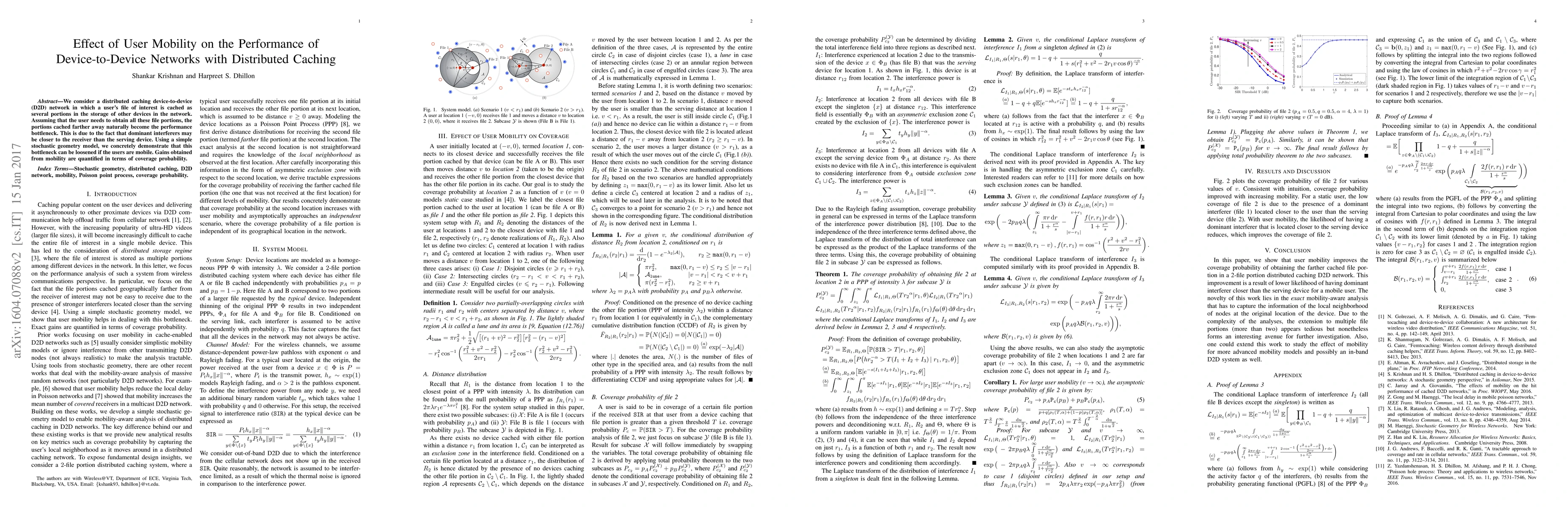 A study shows that user mobility can reduce performance bottlenecks in device-to-device networks with distributed caching by mitigating the effect of dominant interferers.