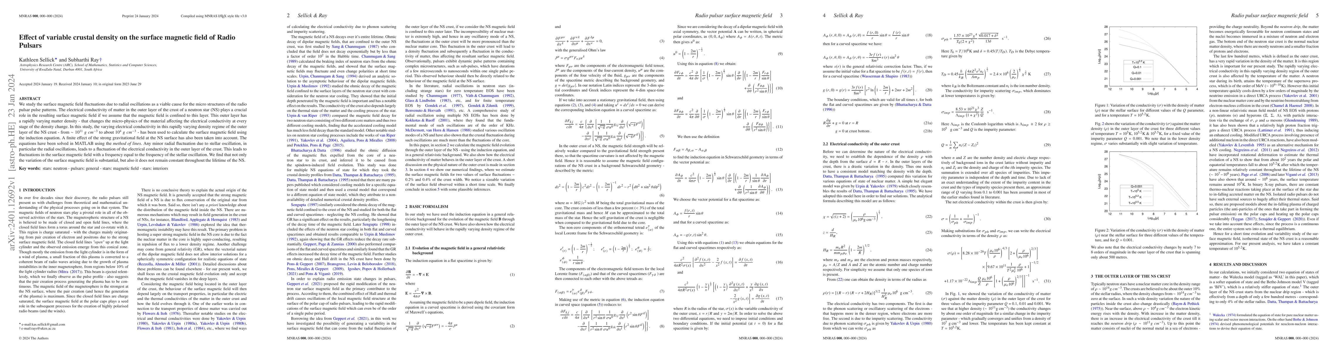 This study investigates how variable crustal density in neutron stars affects their surface magnetic field through radial oscillations, finding that fluctuations in the outer crust's electrical conductivity due to density changes lead to significant and non-constant surface magnetic field variations over the neutron star's lifetime. The research employs numerical methods to solve the induction equation under strong gravitational influence.