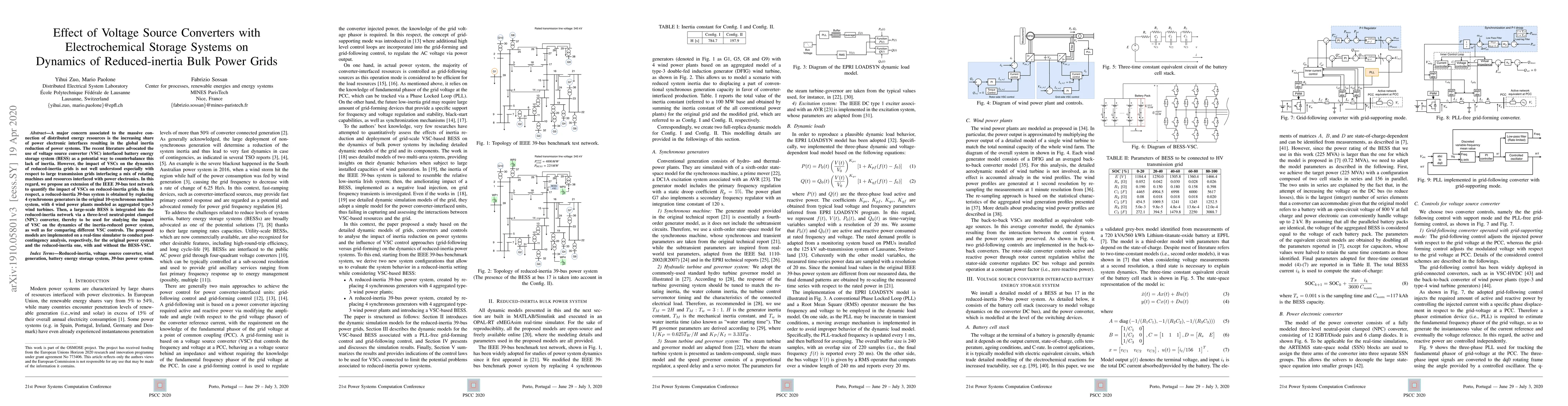 This paper investigates the impact of voltage source converters (VSC) interfaced with electrochemical storage systems on the dynamics of reduced-inertia bulk power grids. It proposes an extended IEEE 39-bus test network to study the effects of VSCs on grids with reduced inertia, integrating a large-scale battery energy storage system (BESS) via a three-level NPC converter to compare different VSC controls and analyze their impact on grid stability.