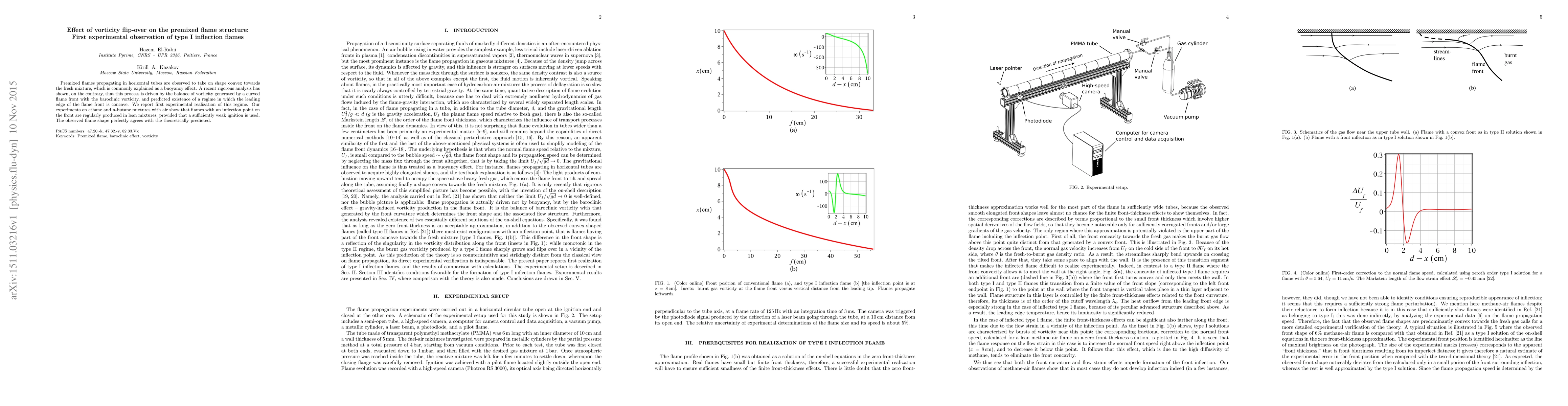 Premixed flames propagating in horizontal tubes are observed to take on shape convex towards the fresh mixture, which is commonly explained as a buoyancy effect. A recent rigorous analysis has shown, on the contrary, that this process is driven by the balance of vorticity generated by a curved flame front with the baroclinic vorticity, and predicted existence of a regime in which the leading edge of the flame front is concave. We report first experimental realization of this regime. Our experiments on ethane and n-butane mixtures with air show that flames with an inflection point on the front are regularly produced in lean mixtures, provided that a sufficiently weak ignition is used. The observed flame shape perfectly agrees with the theoretically predicted.