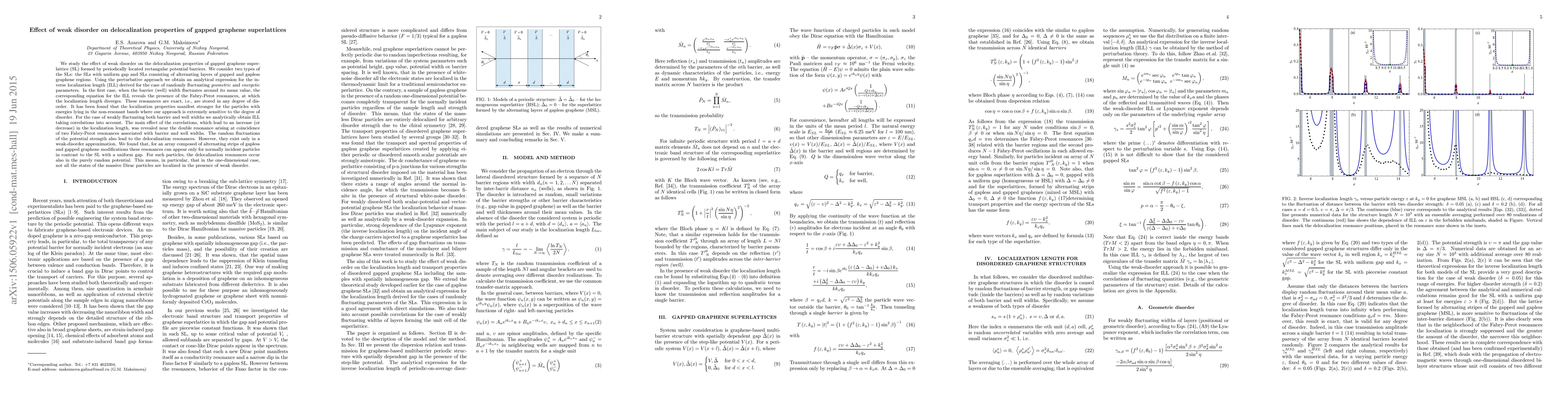This research investigates the impact of weak disorder on the delocalization properties of gapped graphene superlattices, finding that localization is more pronounced in non-resonant bands. Analytical expressions reveal the presence of Fabry-Perot resonances where localization length diverges, and correlations between barrier and well widths influence delocalization near double resonance.