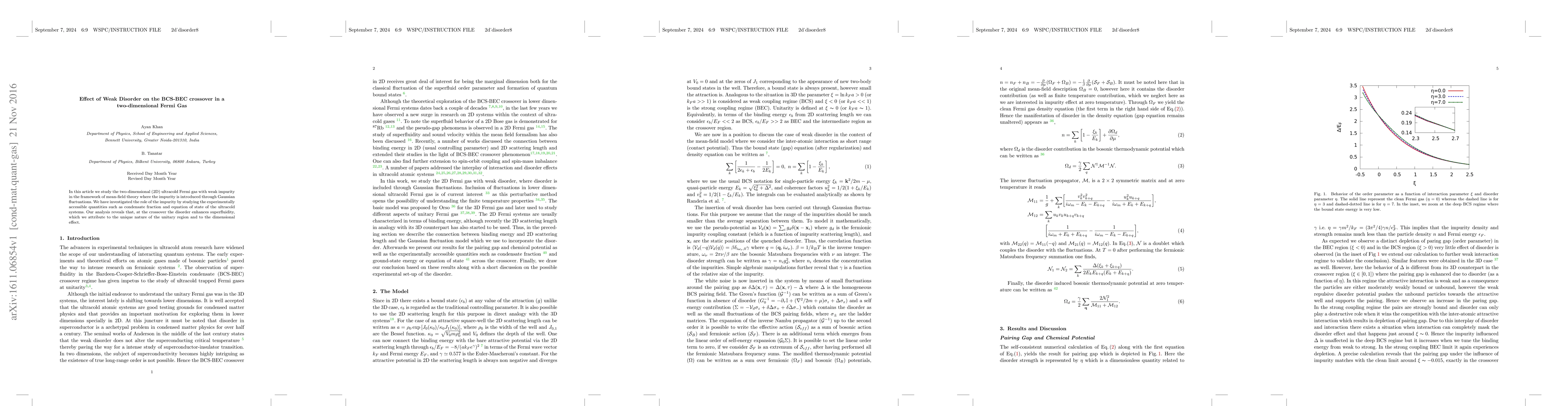 In this article we study the two-dimensional (2D) ultracold Fermi gas with weak impurity in the framework of mean-field theory where the impurity is introduced through Gaussian fluctuations. We have investigated the role of the impurity by studying the experimentally accessible quantities such as condensate fraction and equation of state of the ultracold systems. Our analysis reveals that, at the crossover the disorder enhances superfluidity, which we attribute to the unique nature of the unitary region and to the dimensional effect.