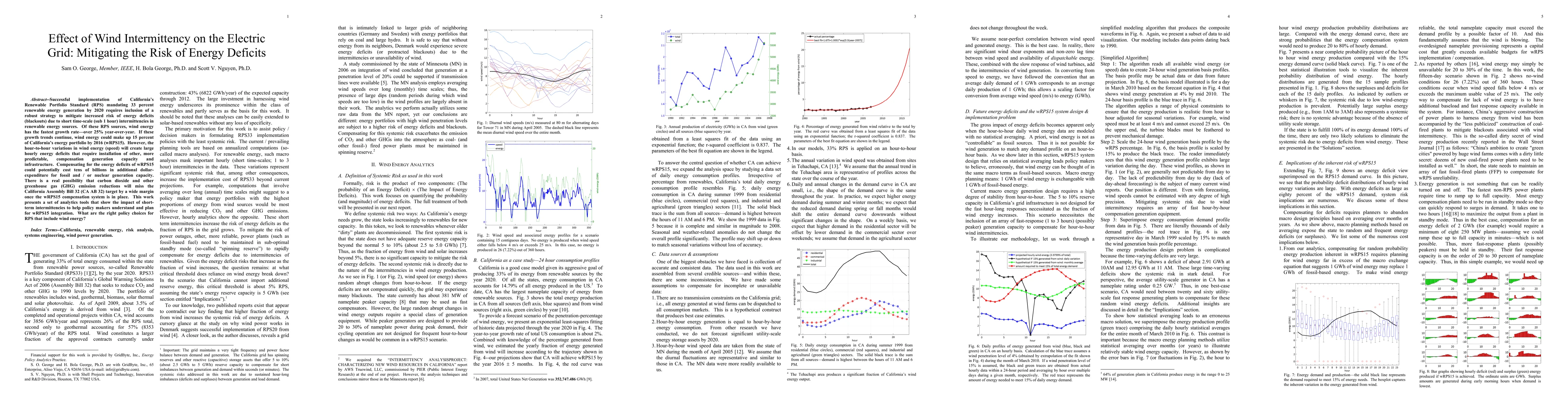 Successful implementation of California's Renewable Portfolio Standard (RPS) mandating 33 percent renewable energy generation by 2020 requires inclusion of a robust strategy to mitigate increased risk of energy deficits (blackouts) due to short time-scale (sub 1 hour) intermittencies in renewable energy sources. Of these RPS sources, wind energy has the fastest growth rate--over 25% year-over-year. If these growth trends continue, wind energy could make up 15 percent of California's energy portfolio by 2016 (wRPS15). However, the hour-to-hour variations in wind energy (speed) will create large hourly energy deficits that require installation of other, more predictable, compensation generation capacity and infrastructure. Compensating for the energy deficits of wRPS15 could potentially cost tens of billions in additional dollar-expenditure for fossil and / or nuclear generation capacity. There is a real possibility that carbon dioxide and other greenhouse gas (GHG) emission reductions will miss the California Assembly Bill 32 (CA AB 32) target by a wide margin once the wRPS15 compensation system is in place. This work presents a set of analytics tools that show the impact of short-term intermittencies to help policy makers understand and plan for wRPS15 integration. What are the right policy choices for RPS that include wind energy?