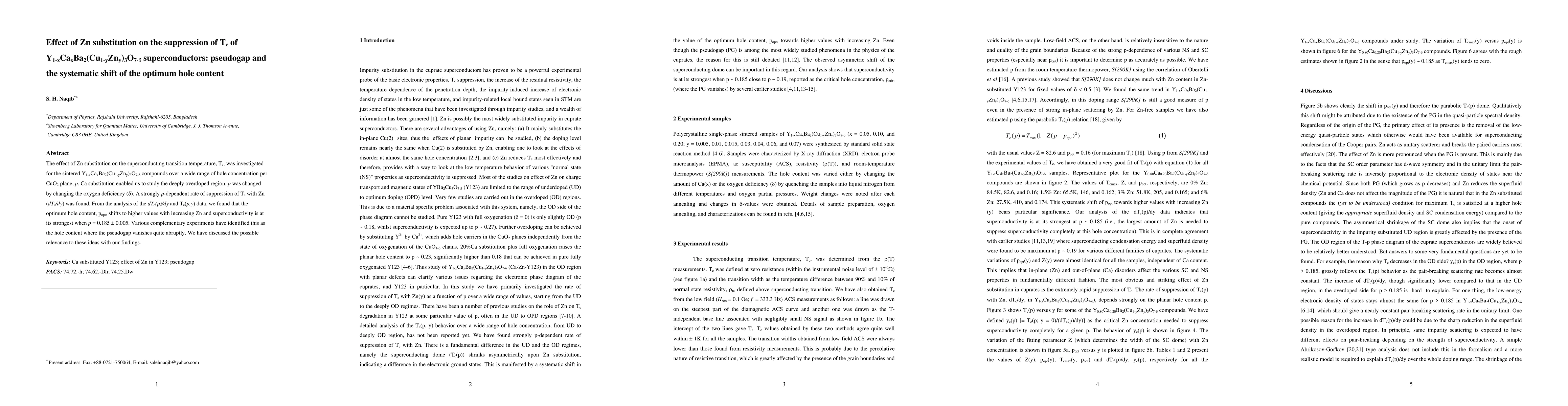 The effect of Zn substitution on the superconducting transition temperature, Tc, was investigated for the sintered Y1-xCaxBa2(Cu1-yZny)3O7-delta compounds over a wide range of hole concentration per CuO2 plane, p. Ca substitution enabled us to study the deeply overdoped region. p was changed by changing the oxygen deficiency (delta). A strongly p-dependent rate of suppression of Tc with Zn (dTc/dy) was found. From the analysis of the dTc(p)/dy and Tc(p,y) data, we found that the optimum hole content, popt, shifts to higher values with increasing Zn and superconductivity is at its strongest when p = 0.185 +/- 0.005. Various complementary experiments have identified this as the hole content where the pseudogap vanishes quite abruptly. We have discussed the possible relevance to these ideas with our findings.