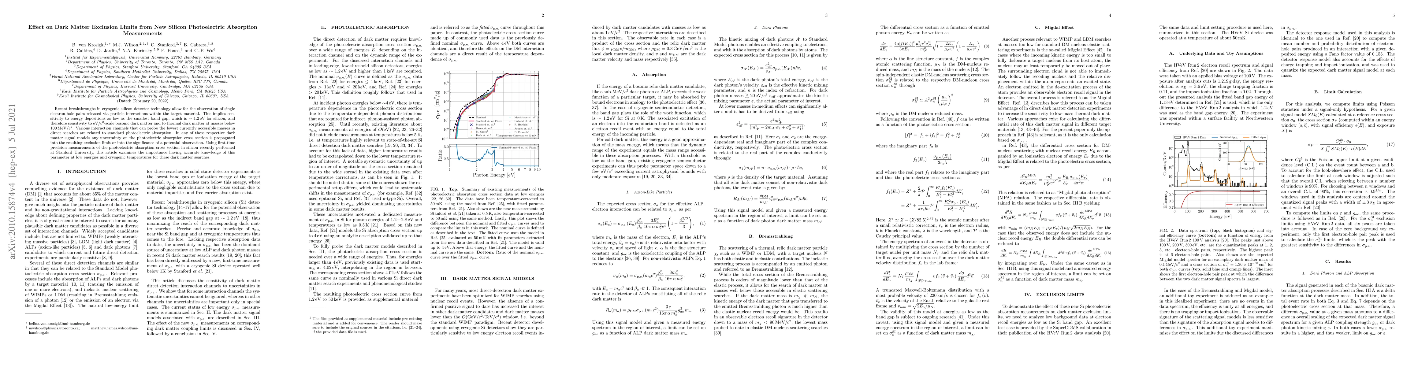 This paper discusses the significance of precise photoelectric absorption cross-section measurements in silicon for dark matter detection, particularly for eV/c²-scale bosonic dark matter and thermal dark matter below 100 MeV/c². It highlights the need for accurate knowledge of this parameter at low energies and cryogenic temperatures to avoid uncertainties in dark matter exclusion limits or potential observation significance.