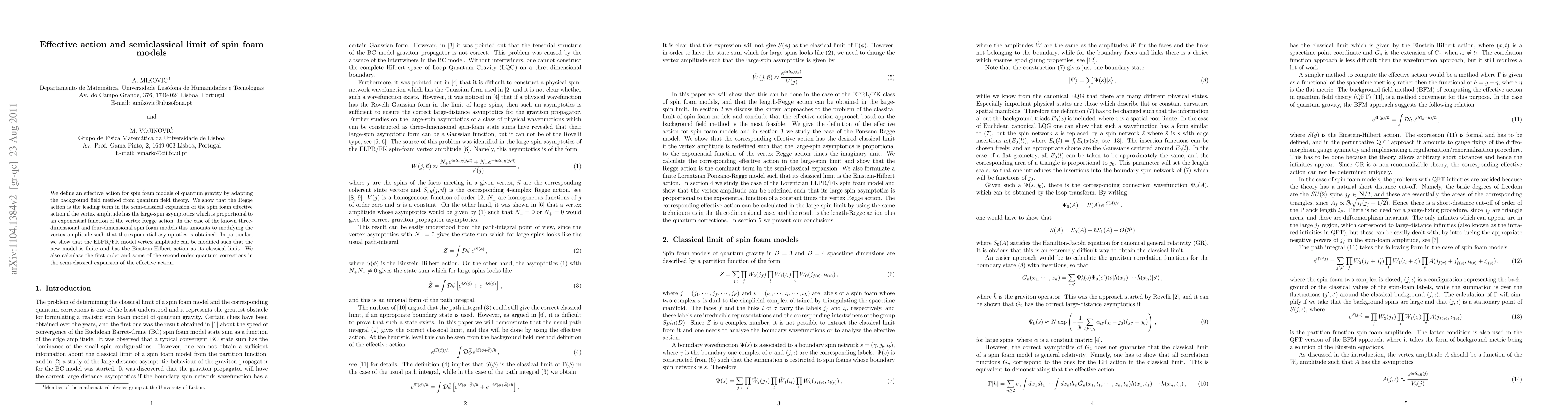 This paper defines an effective action for spin foam models using the background field method and demonstrates that the Regge action emerges as the leading term in the semiclassical limit. It shows modifications to the vertex amplitude in specific spin foam models to achieve the desired asymptotics, ensuring the Einstein-Hilbert action as the classical limit, and computes first-order and some second-order quantum corrections.