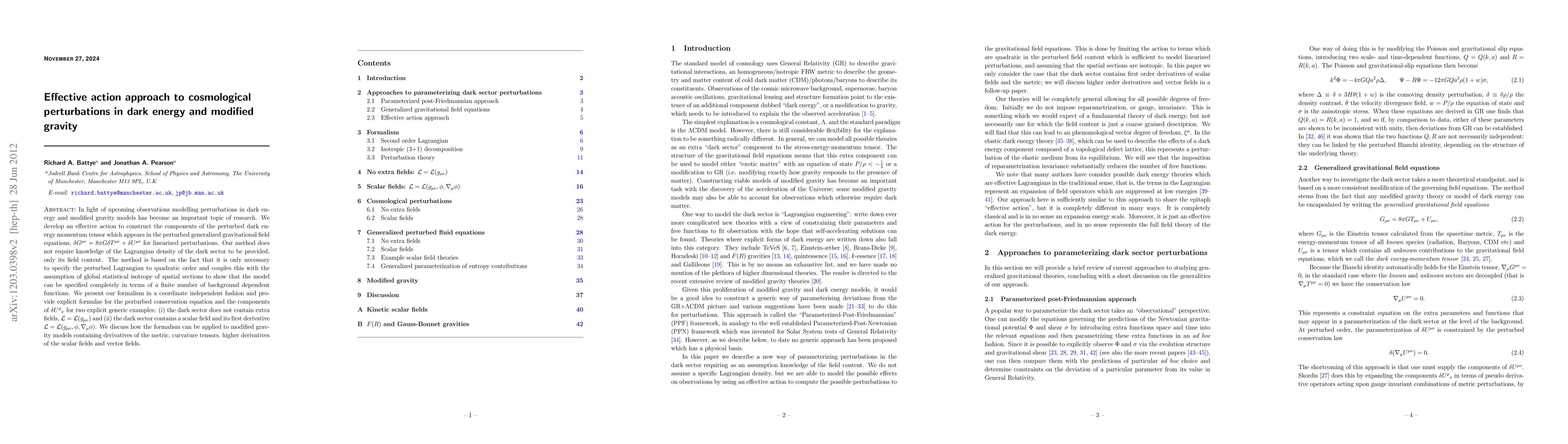 This paper develops an effective action approach to model perturbations in dark energy and modified gravity, focusing on constructing components of the perturbed dark energy momentum tensor. The method is coordinate independent and does not require knowledge of the dark sector's Lagrangian, only its field content, and applies to various modified gravity models.