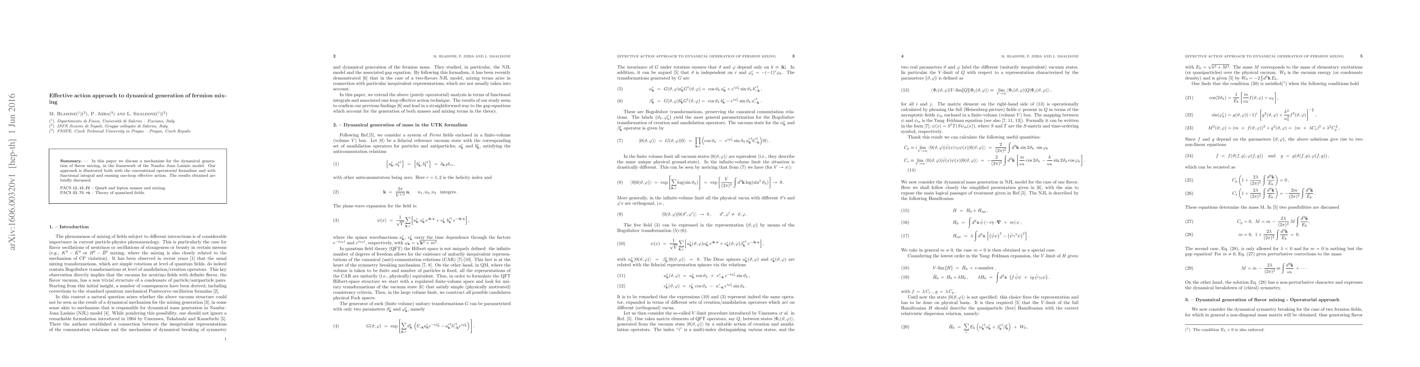 This paper proposes a mechanism for dynamically generating fermion mixing in particle physics using the Nambu-Jona Lasinio model, with results obtained through both operatorial formalism and functional integral methods.
