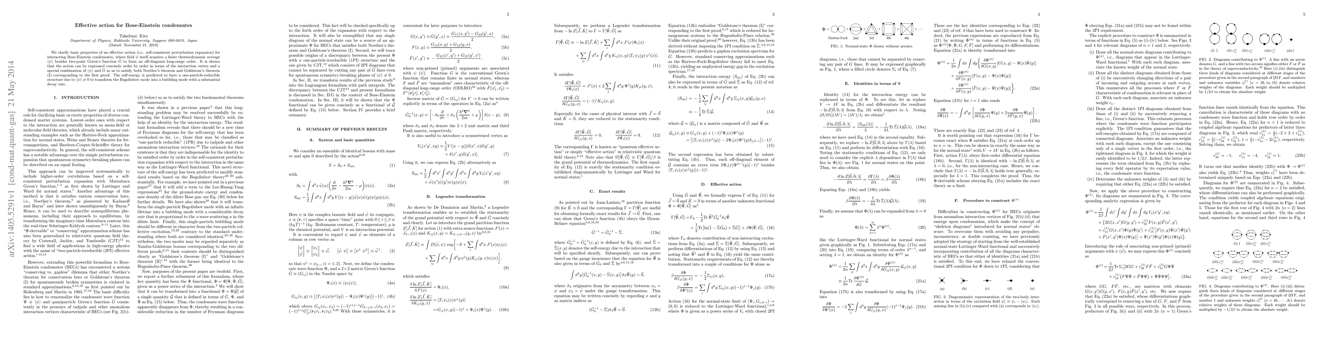This research paper elucidates the properties of an effective action for interacting Bose-Einstein condensates, showing it can be expressed order by order using interaction vertices and a specific combination of the field's average and Green's function. The self-energy is predicted to have a one-particle-reducible structure, transforming the Bogoliubov mode into a bubbling mode with a notable decay rate.