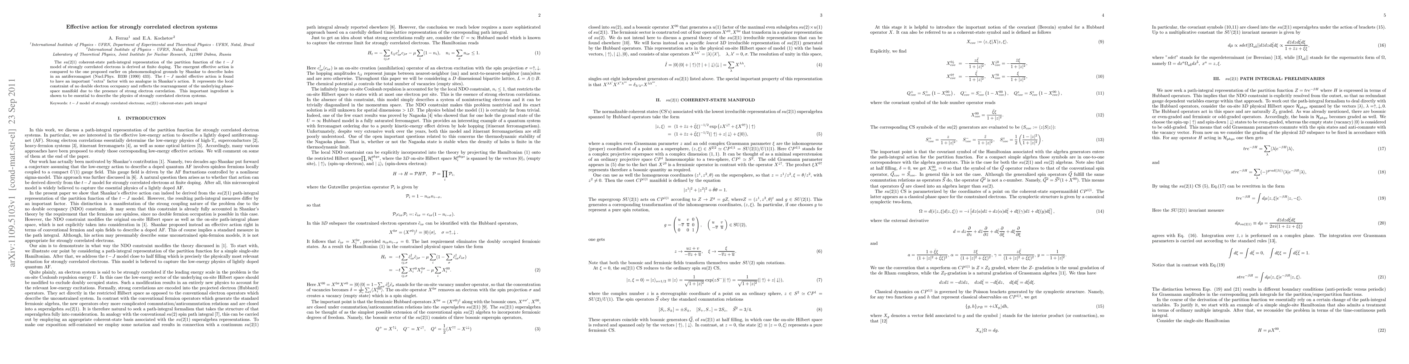 This paper derives an effective action for the t-J model of strongly correlated electrons using a su(2|1) coherent-state path integral. It identifies an "extra" factor in the derived effective action, crucial for capturing the local constraint of no double electron occupancy, which significantly impacts the description of these systems.