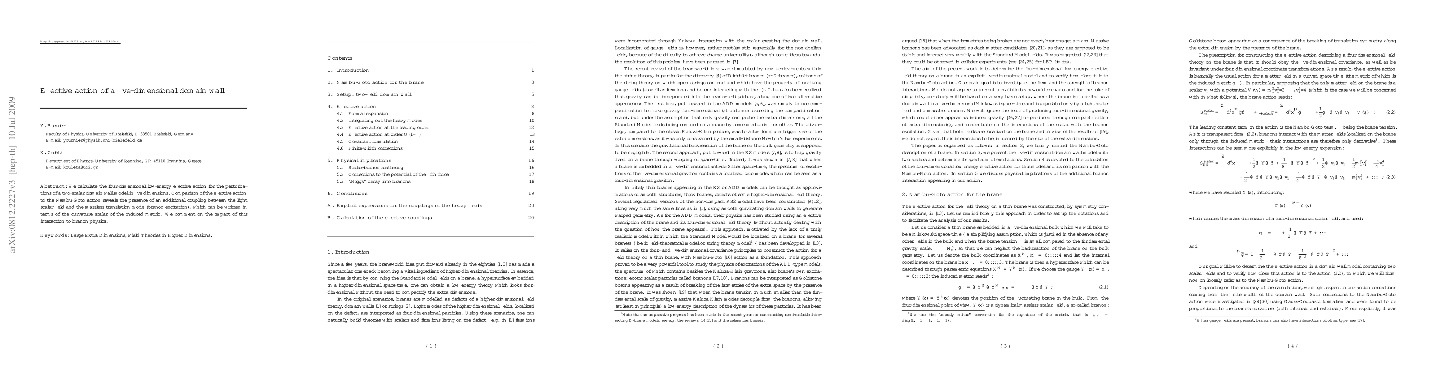 We calculate the four-dimensional low-energy effective action for the perturbations of a two-scalar domain wall model in five dimensions. Comparison of the effective action to the Nambu-Goto action reveals the presence of an additional coupling between the light scalar field and the massless translation mode (branon excitation), which can be written in terms of the curvature scalar of the induced metric. We comment on the impact of this interaction to branon physics.