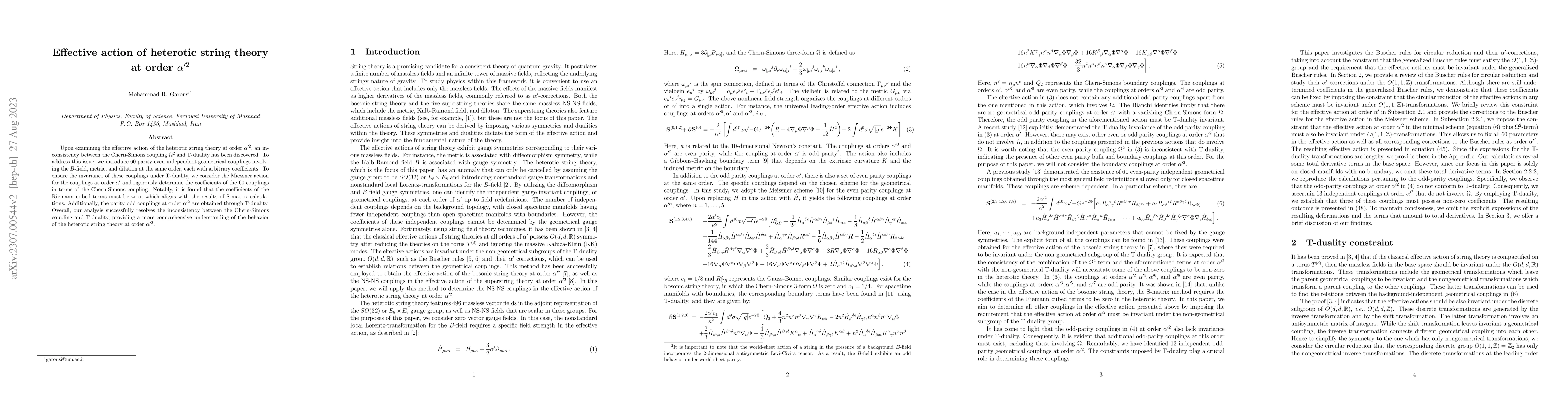 The novelty of this work lies in the identification and characterization of these additional couplings, which were necessary to reconcile the inconsistency between the Chern-Simons term and T-duality in the heterotic string theory effective action at order $\alpha'^2$.