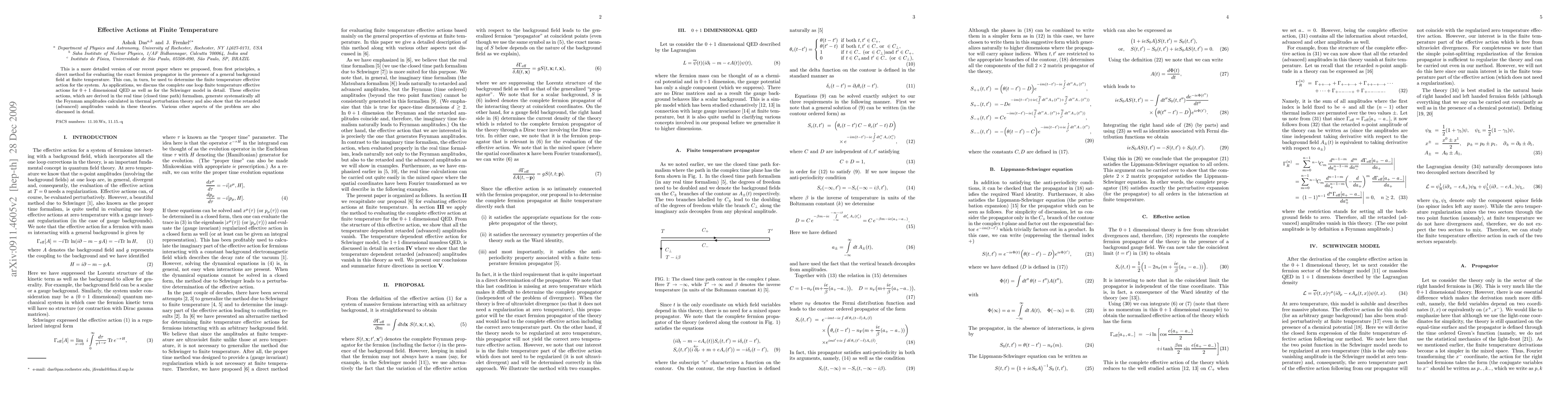 This is a more detailed version of our recent paper where we proposed, from first principles, a direct method for evaluating the exact fermion propagator in the presence of a general background field at finite temperature. This can, in turn, be used to determine the finite temperature effective action for the system. As applications, we discuss the complete one loop finite temperature effective actions for 0+1 dimensional QED as well as for the Schwinger model in detail. These effective actions, which are derived in the real time (closed time path) formalism, generate systematically all the Feynman amplitudes calculated in thermal perturbation theory and also show that the retarded (advanced) amplitudes vanish in these theories. Various other aspects of the problem are also discussed in detail.