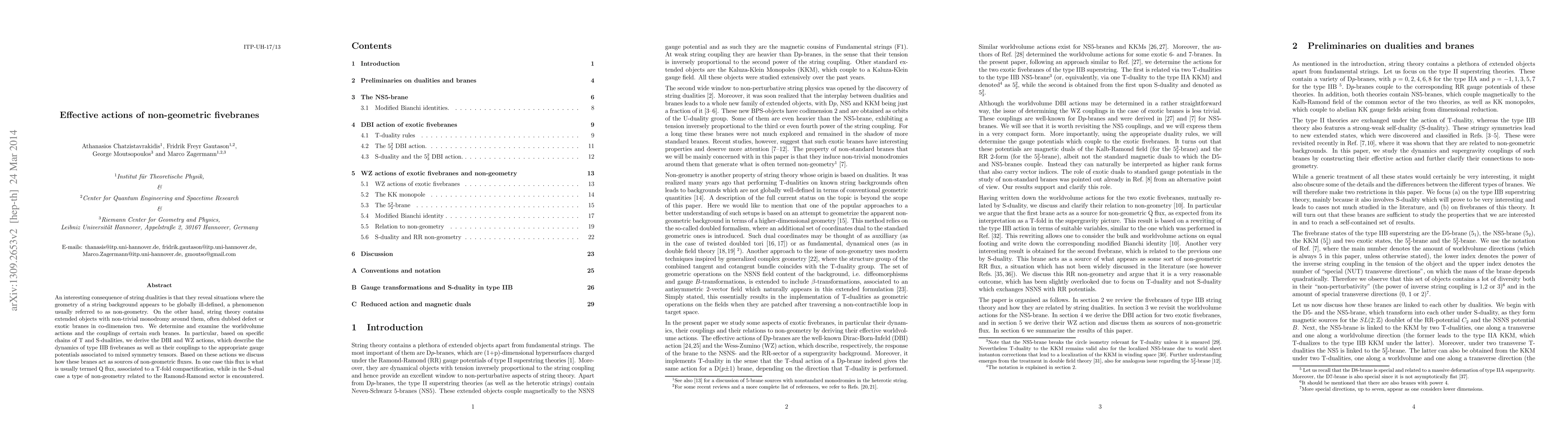 An interesting consequence of string dualities is that they reveal situations where the geometry of a string background appears to be globally ill-defined, a phenomenon usually referred to as non-geometry. On the other hand, string theory contains extended objects with non-trivial monodromy around them, often dubbed defect or exotic branes in co-dimension two. We determine and examine the worldvolume actions and the couplings of certain such branes. In particular, based on specific chains of T and S-dualities, we derive the DBI and WZ actions, which describe the dynamics of type IIB fivebranes as well as their couplings to the appropriate gauge potentials associated to mixed symmetry tensors. Based on these actions we discuss how these branes act as sources of non-geometric fluxes. In one case this flux is what is usually termed Q flux, associated to a T-fold compactification, while in the S-dual case a type of non-geometry related to the Ramond-Ramond sector is encountered.