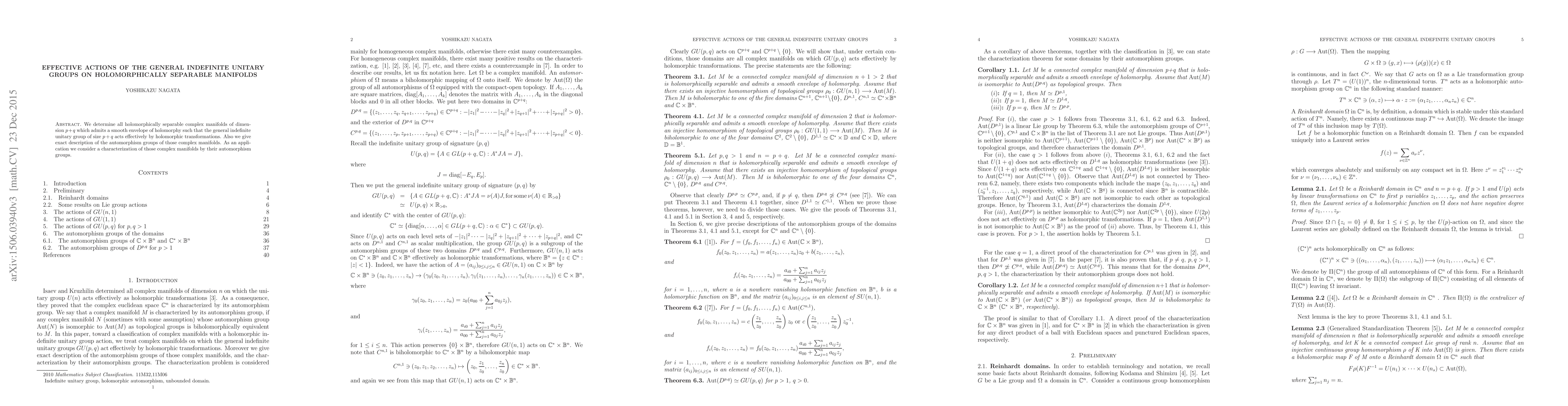 This paper identifies holomorphically separable complex manifolds admitting smooth envelopes of holomorphy where the general indefinite unitary group acts effectively via holomorphic transformations, and provides an exact description of their automorphism groups. The study also characterizes these manifolds based on their automorphism groups.