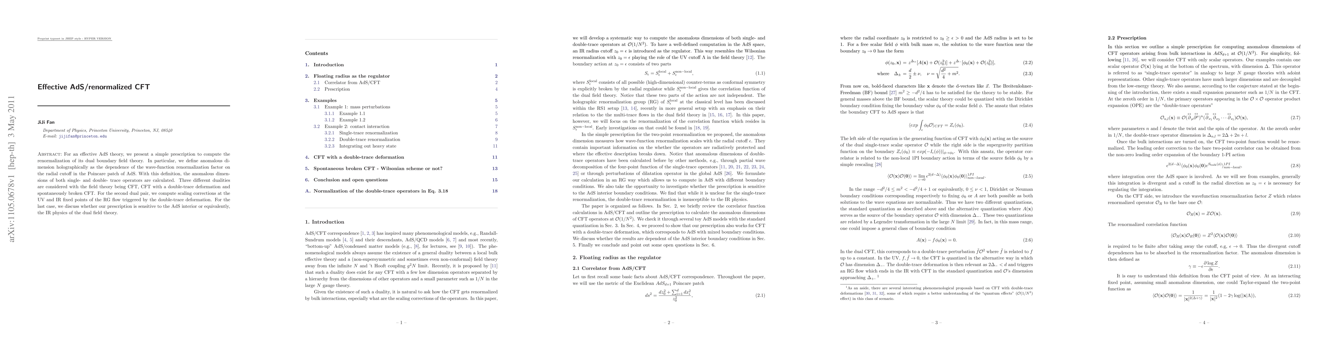 This research proposes a method for computing the renormalization of an effective AdS theory and its dual boundary field theory, defining anomalous dimensions holographically. It calculates anomalous dimensions for single- and double-trace operators in CFTs, including scenarios with double-trace deformations and spontaneous symmetry breaking.
