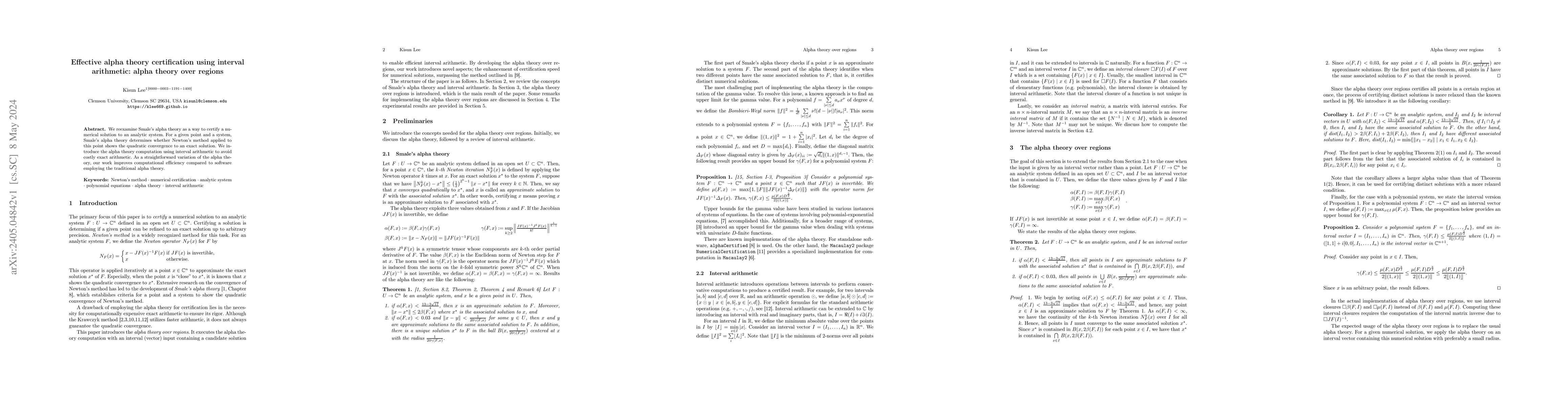 We reexamine Smale's alpha theory as a way to certify a numerical solution to an analytic system. For a given point and a system, Smale's alpha theory determines whether Newton's method applied to this point shows the quadratic convergence to an exact solution. We introduce the alpha theory computation using interval arithmetic to avoid costly exact arithmetic. As a straightforward variation of the alpha theory, our work improves computational efficiency compared to software employing the traditional alpha theory.