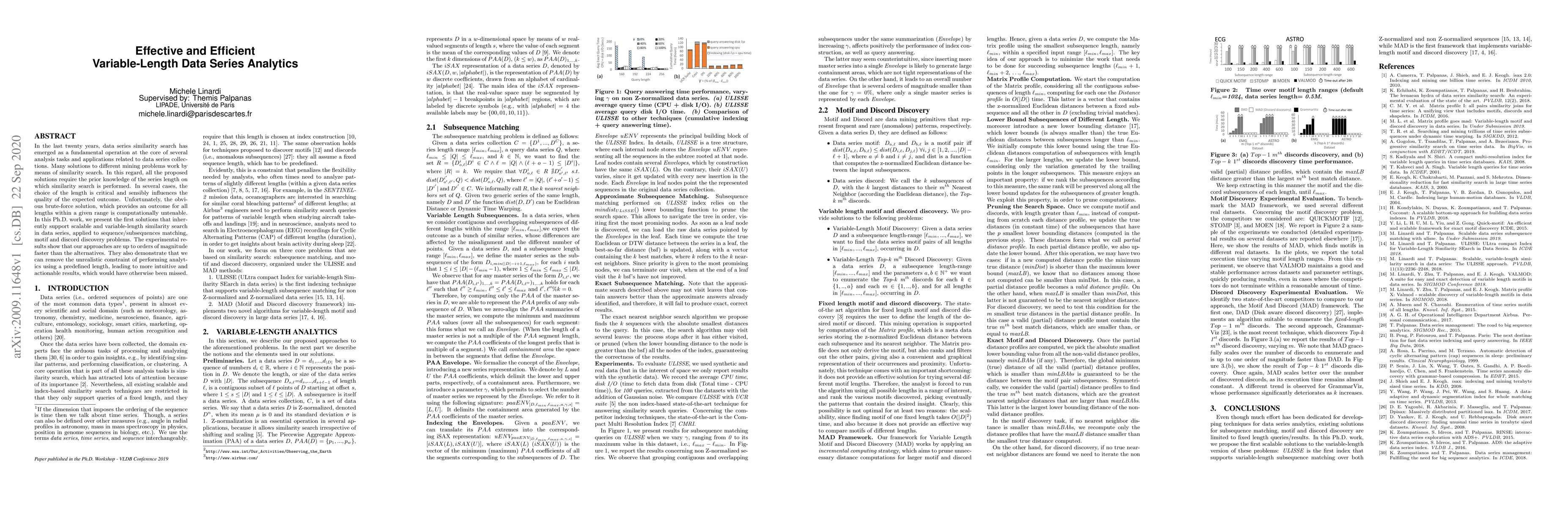 This research paper introduces a scalable method for variable-length data series analytics, enabling faster and more efficient similarity search in sequence and subsequence matching, motif discovery, and discord analysis.