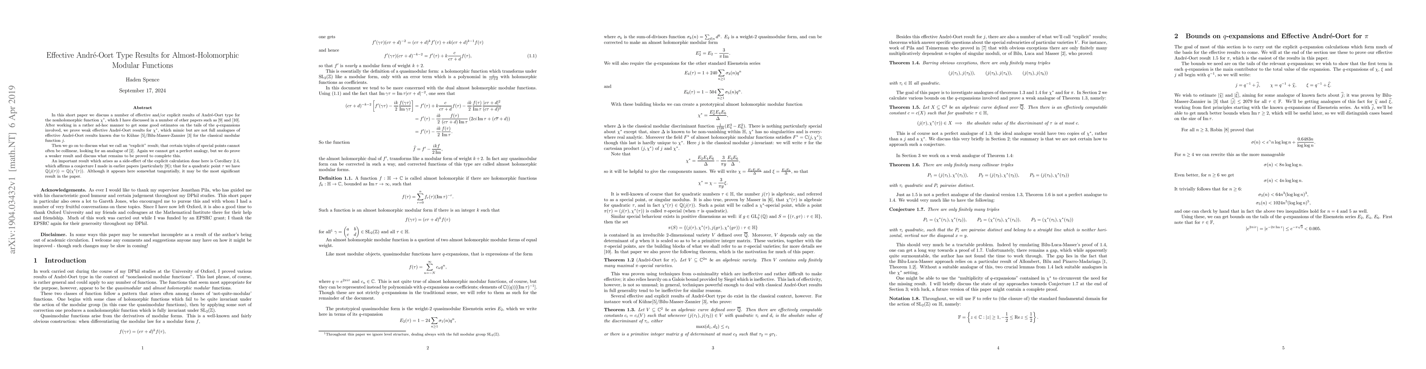 This paper provides effective results for a nonholomorphic modular function $ heta^*$, including a proof of weak effective André-Oort results and an explicit result on collinearity of special points, with significant implications for the study of quadratic points and conjectures about their field relations.