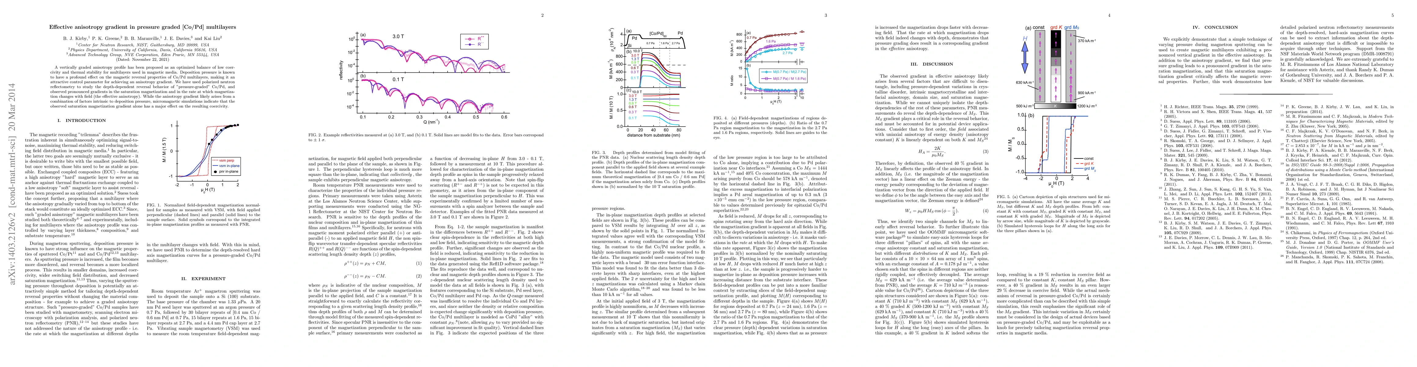 A vertically graded anisotropy profile has been proposed as an optimized balance of low coercivity and thermal stability for multilayers used in magnetic media. Deposition pressure is known to have a profound effect on the magnetic reversal properties of Co/Pd multilayers, making it an attractive control parameter for achieving an anisotropy gradient. We have used polarized neutron reflectometry to study the depth-dependent reversal behavior of "pressure-graded" Co/Pd, and observed pronounced gradients in the saturation magnetization and in the rate at which magnetization changes with field (the effective anisotropy). While the anisotropy gradient likely arises from a combination of factors intrinsic to deposition pressure, micromagnetic simulations indicate that the observed saturation magnetization gradient alone has a major effect on the resulting coercivity.