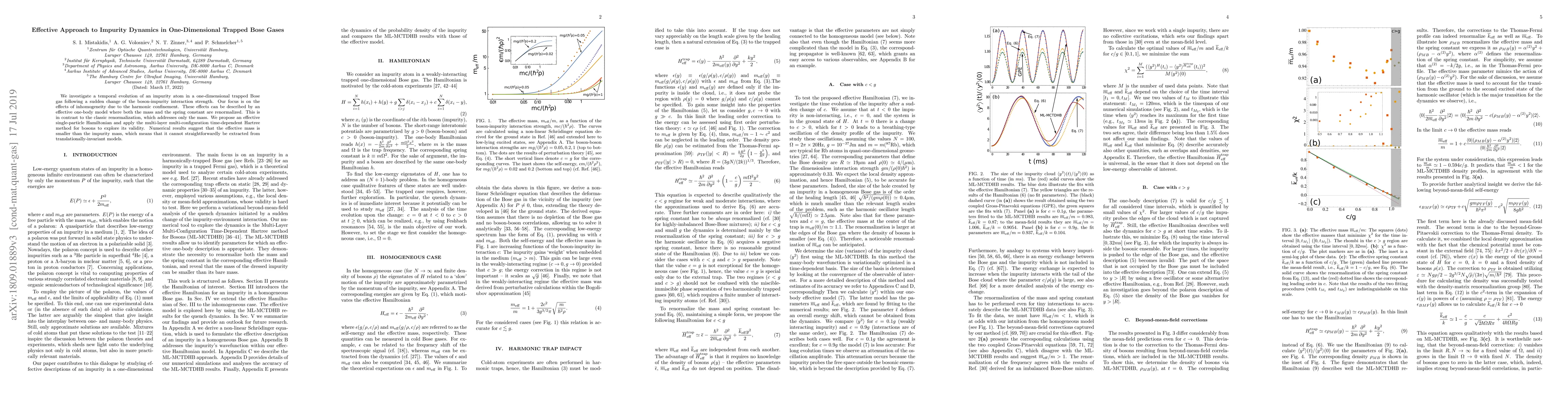 We investigate a temporal evolution of an impurity atom in a one-dimensional trapped Bose gas following a sudden change of the boson-impurity interaction strength. Our focus is on the effects of inhomogeneity due to the harmonic confinement. These effects can be described by an effective one-body model where both the mass and the spring constant are renormalized. This is in contrast to the classic renormalization, which addresses only the mass. We propose an effective single-particle Hamiltonian and apply the multilayer multiconfiguration time-dependent Hartree method for bosons to explore its validity. Numerical results suggest that the effective mass is smaller than the impurity mass, which means that it cannot straightforwardly be extracted from translationally invariant models.