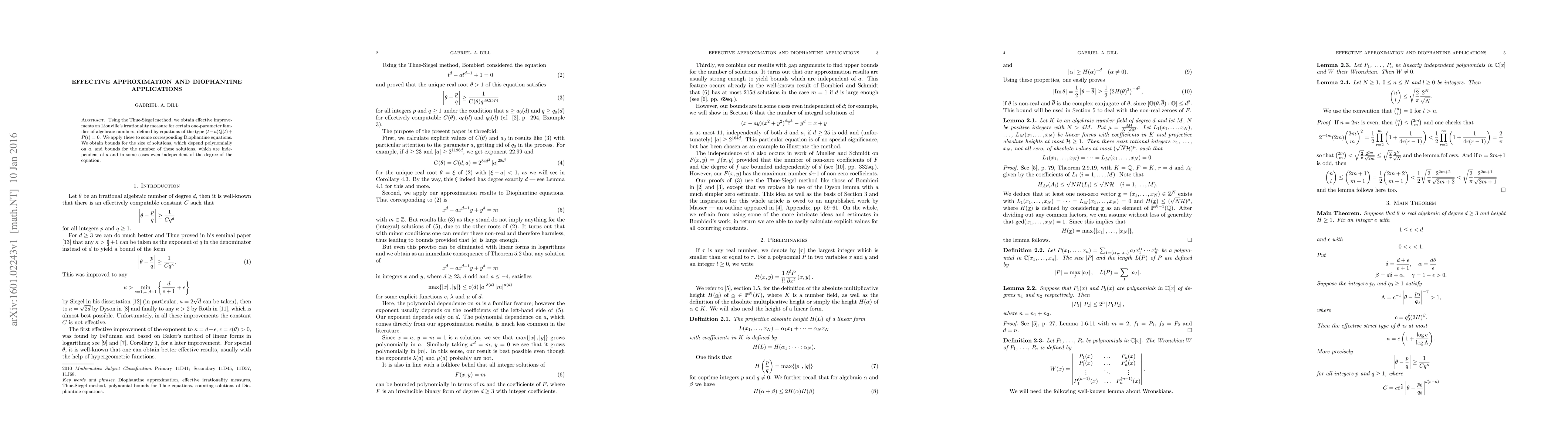 Summary: The paper improves Liouville's irrationality measure for specific algebraic numbers using the Thue-Siegel method, leading to effective bounds for solutions of corresponding Diophantine equations, with polynomial dependence on parameters and sometimes independent of the equation's degree.