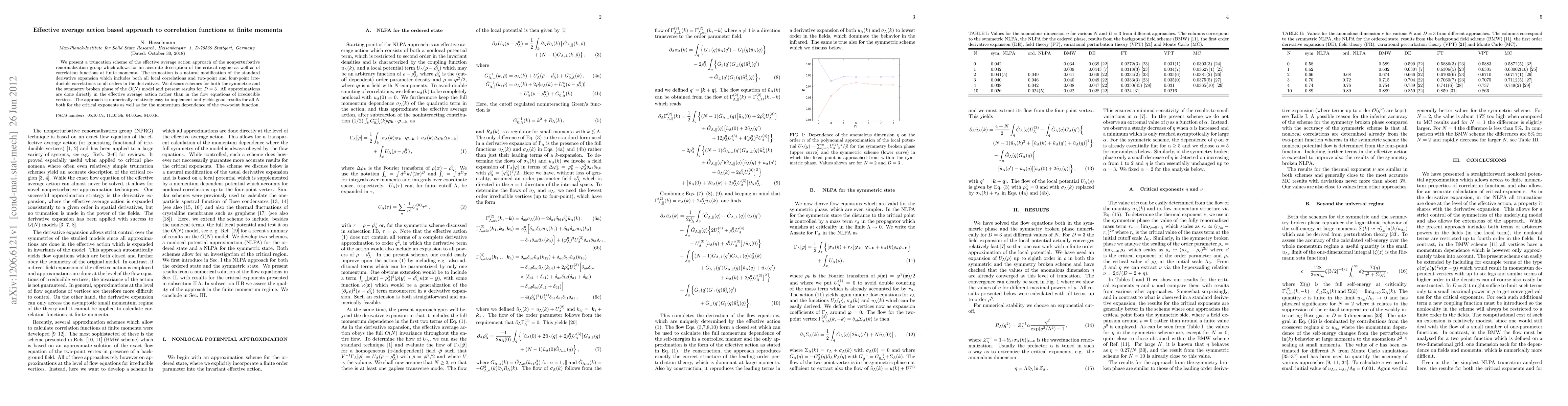 We present a truncation scheme of the effective average action approach of the nonperturbative renormalization group which allows for an accurate description of the critical regime as well as of correlation functions at finite momenta. The truncation is a natural modification of the standard derivative expansion which includes both all local correlations and two-point and four-point irreducible correlations to all orders in the derivatives. We discuss schemes for both the symmetric and the symmetry broken phase of the O(N) model and present results for D=3. All approximations are done directly in the effective average action rather than in the flow equations of irreducible vertices. The approach is numerically relatively easy to implement and yields good results for all N both for the critical exponents as well as for the momentum dependence of the two-point function.