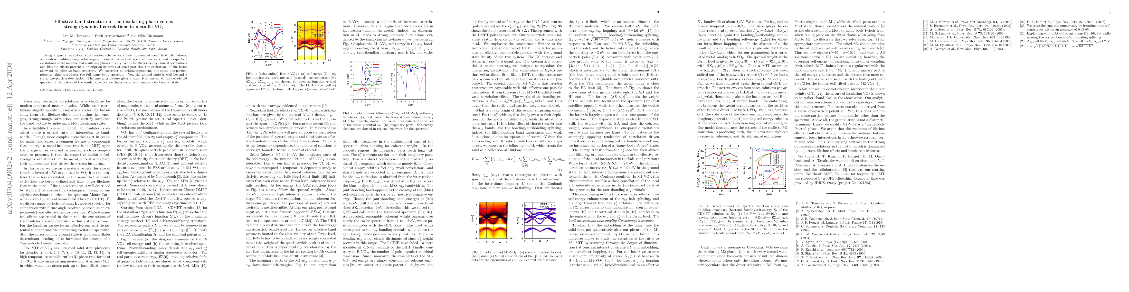 Using a general analytical continuation scheme for cluster dynamical mean field calculations, we analyze real-frequency self-energies, momentum-resolved spectral functions, and one-particle excitations of the metallic and insulating phases of VO2. While for the former dynamical correlations and lifetime effects prevent a description in terms of quasi-particles, the excitations of the latter allow for an effective band-structure. We construct an orbital-dependent, but static one-particle potential that reproduces the full many-body spectrum. Yet, the ground state is well beyond a static one-particle description. The emerging picture gives a non-trivial answer to the decade-old question of the nature of the insulator, which we characterize as a ``many-body Peierls'' state.