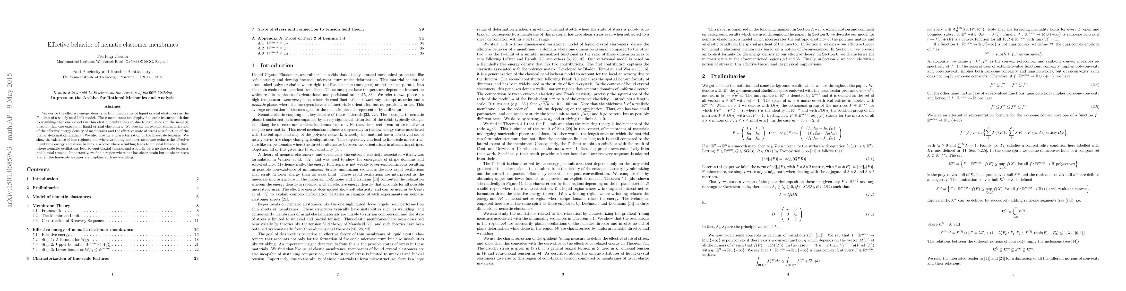 This paper derives the effective energy density of thin liquid crystal elastomer membranes, identifying four distinct regimes based on deformation and fine-scale features, including wrinkling and nematic director oscillations, and highlights a unique region with in-plane shear strain without shear stress.
