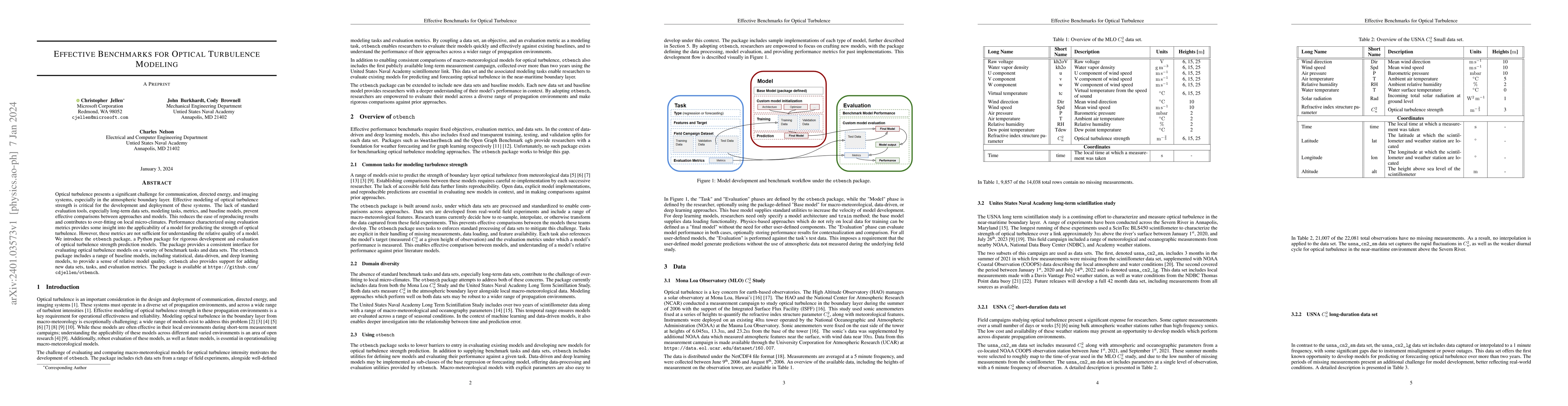 The paper introduces the \texttt{otbench} package to standardize evaluation of optical turbulence models, offering baseline models and a consistent interface for benchmarking. The package aims to improve reproducibility and reduce overfitting by providing a comprehensive suite of evaluation metrics and data sets.