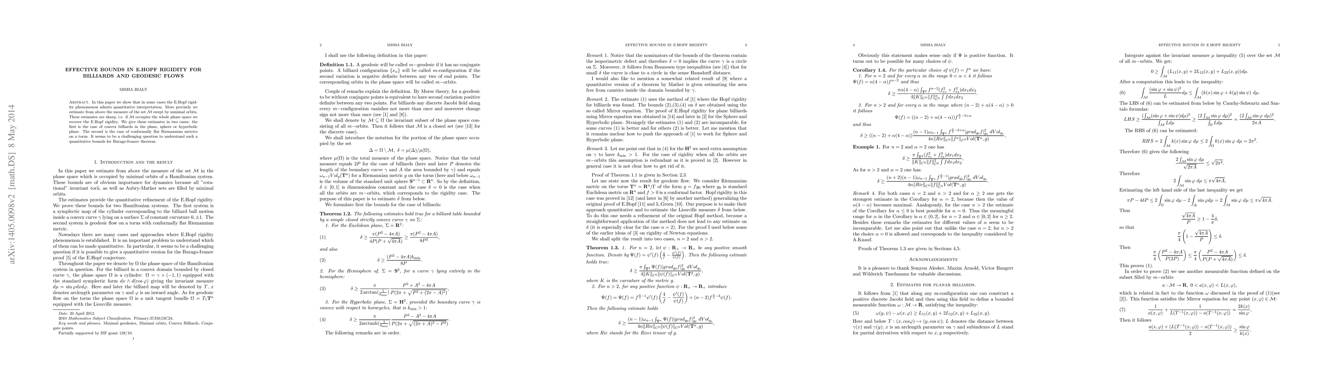 In this paper we show that in some cases the E.Hopf rigidity phenomenon admits quantitative interpretation. More precisely we estimate from above the measure of the set $\mathcal{M}$ swept by minimal orbits. These estimates are sharp, i.e. if $\mathcal{M}$ occupies the whole phase space we recover the E.Hopf rigidity. We give these estimates in two cases: the first is the case of convex billiards in the plane, sphere or hyperbolic plane. The second is the case of conformally flat Riemannian metrics on a torus. It seems to be a challenging question to understand such a quantitative bounds for Burago-Ivanov theorem.