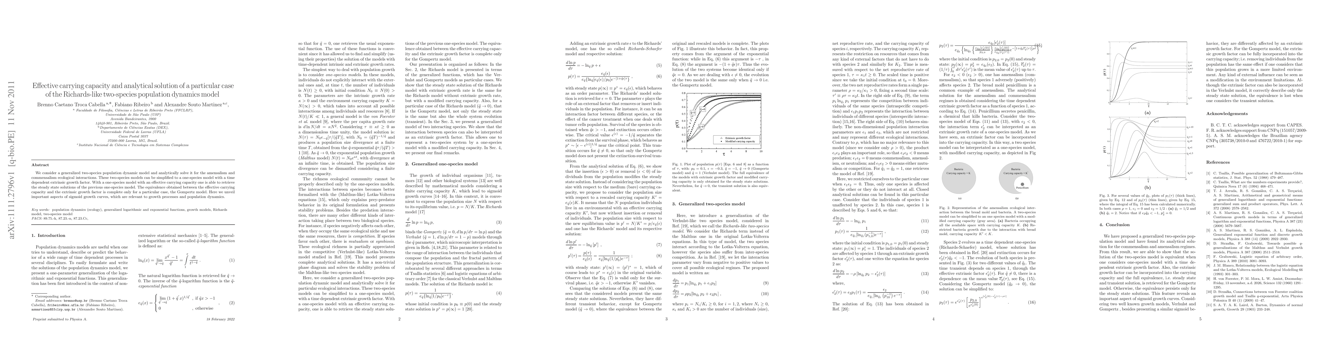 We consider a generalized two-species population dynamic model and analytically solve it for the amensalism and commensalism ecological interactions. These two-species models can be simplified to a one-species model with a time dependent extrinsic growth factor. With a one-species model with an effective carrying capacity one is able to retrieve the steady state solutions of the previous one-species model. The equivalence obtained between the effective carrying capacity and the extrinsic growth factor is complete only for a particular case, the Gompertz model. Here we unveil important aspects of sigmoid growth curves, which are relevant to growth processes and population dynamics.