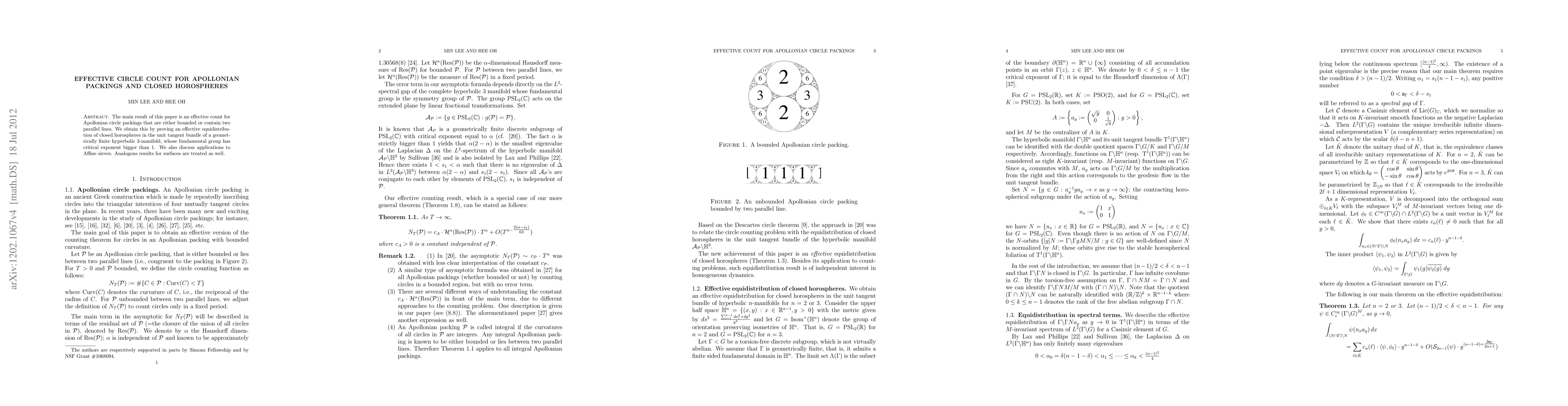 This paper provides an effective count of Apollonian circle packings bounded by two parallel lines or otherwise constrained, achieved through the effective equidistribution of closed horospheres in hyperbolic 3-manifolds. The study also extends analogous results to surfaces and discusses applications to affine sieves.