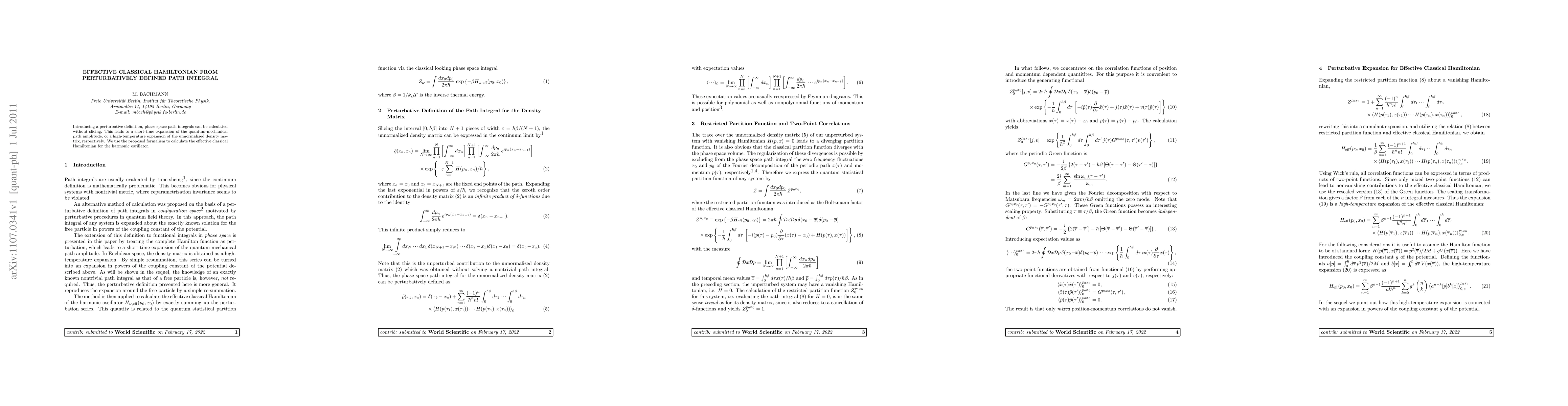 This paper proposes a perturbatively defined path integral method that avoids slicing, enabling the calculation of quantum-mechanical path amplitudes without it. The method is applied to derive the effective classical Hamiltonian for a harmonic oscillator.