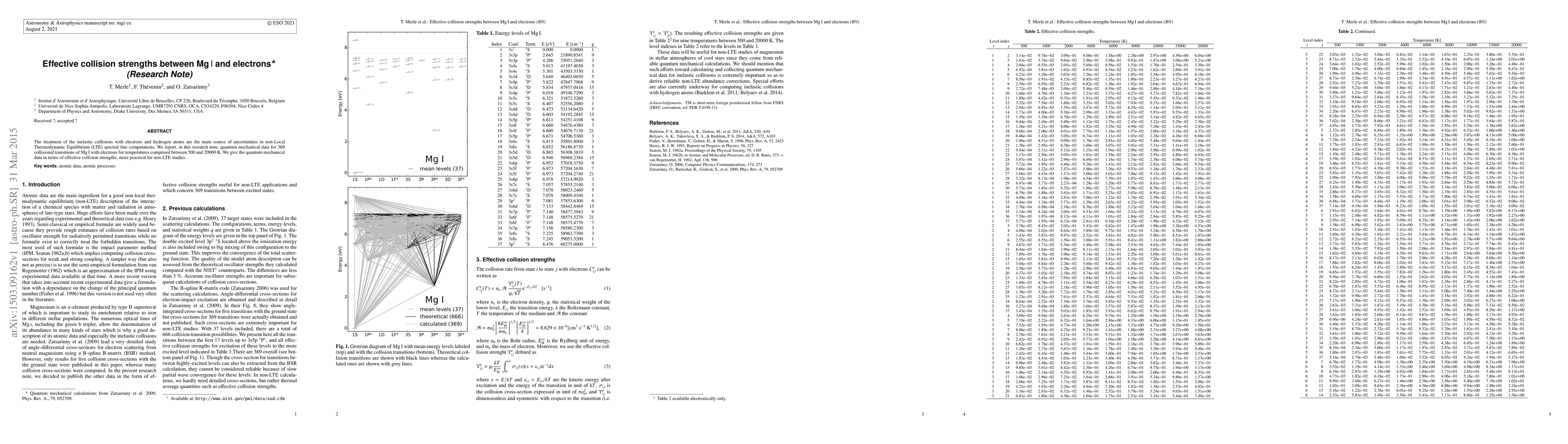 The treatment of the inelastic collisions with electrons and hydrogen atoms are the main source of uncertainties in non-Local Thermodynamic Equilibrium (LTE) spectral line computations. We report, in this research note, quantum mechanical data for 369 collisional transitions of \ion{Mg}{I} with electrons for temperatures comprised between 500 and 20000~K. We give the quantum mechanical data in terms of effective collision strengths, more practical for non-LTE studies.