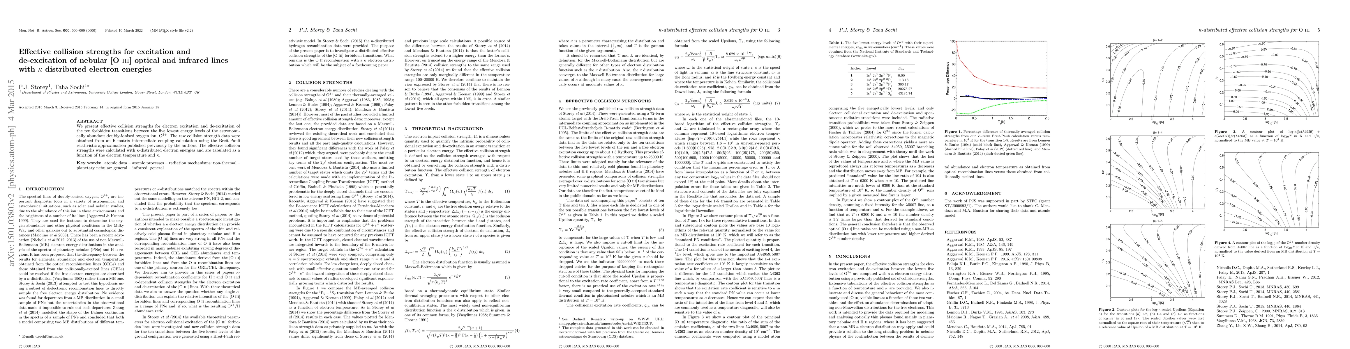 This paper provides effective collision strengths for the excitation and de-excitation of nebular [O III] optical and infrared lines, calculated using R-matrix methods and kappa-distributed electron energies. The results are tabulated for various electron temperatures and kappa values.