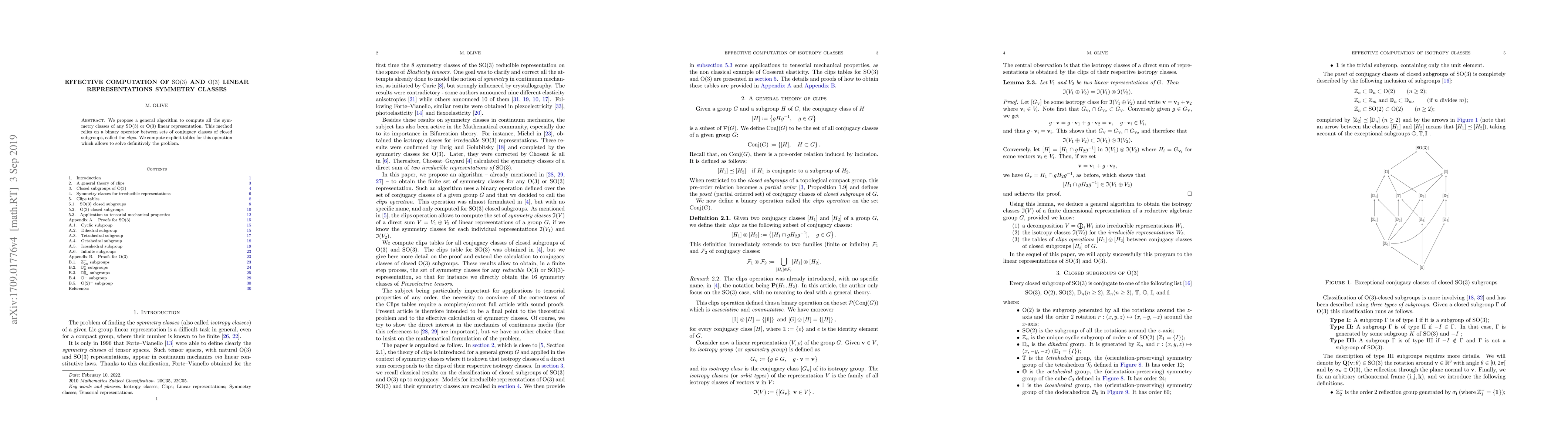 This paper proposes a new algorithm to compute symmetry classes for SO(3) and O(3) linear representations, using a binary operator called 'clips' to simplify the problem.