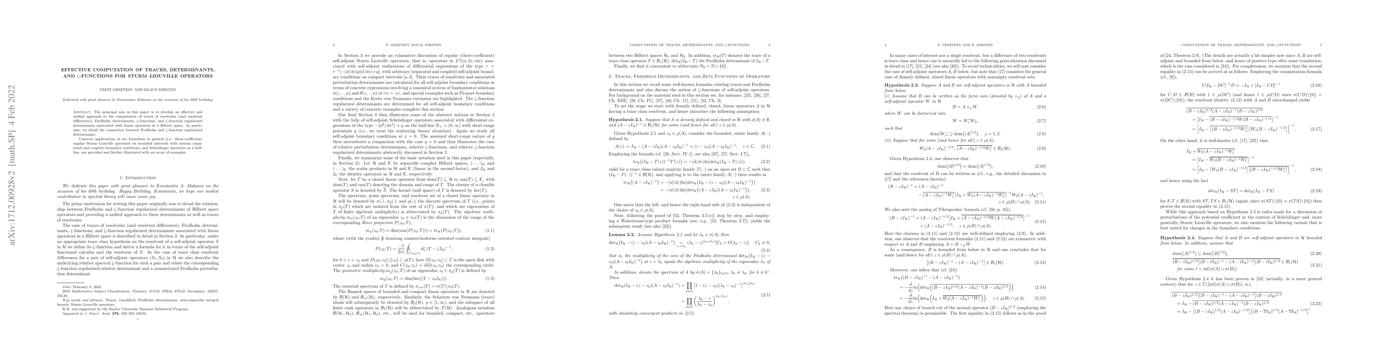 Fritz Gesztesy, Klaus Kirsten, Guglielmo Fucci et al.