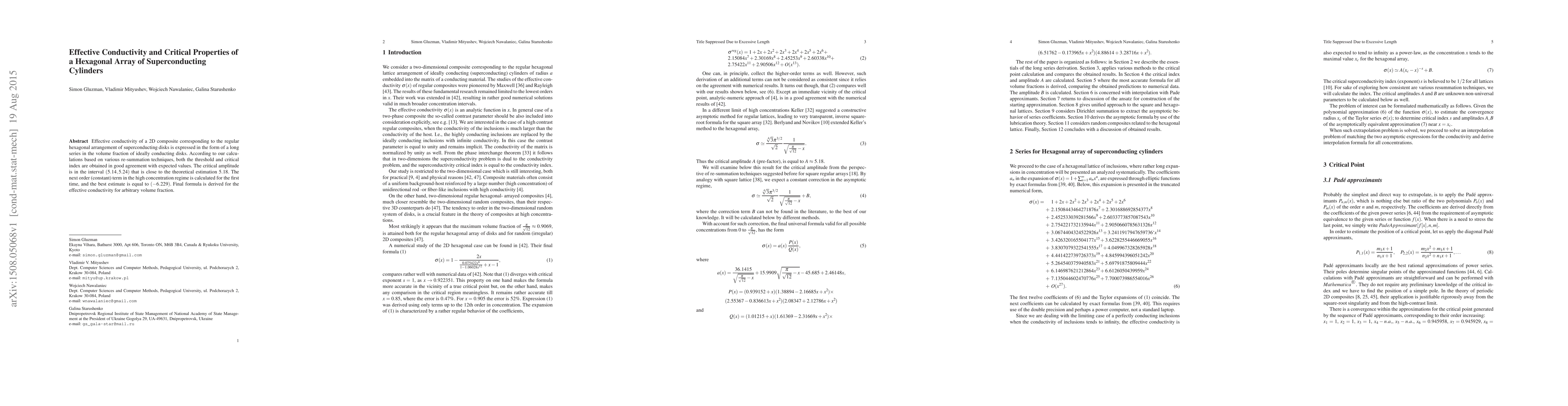 Researchers calculated a formula for effective conductivity in a 2D composite of superconducting cylinders with high accuracy, finding a critical amplitude close to the theoretical value of 5.18.