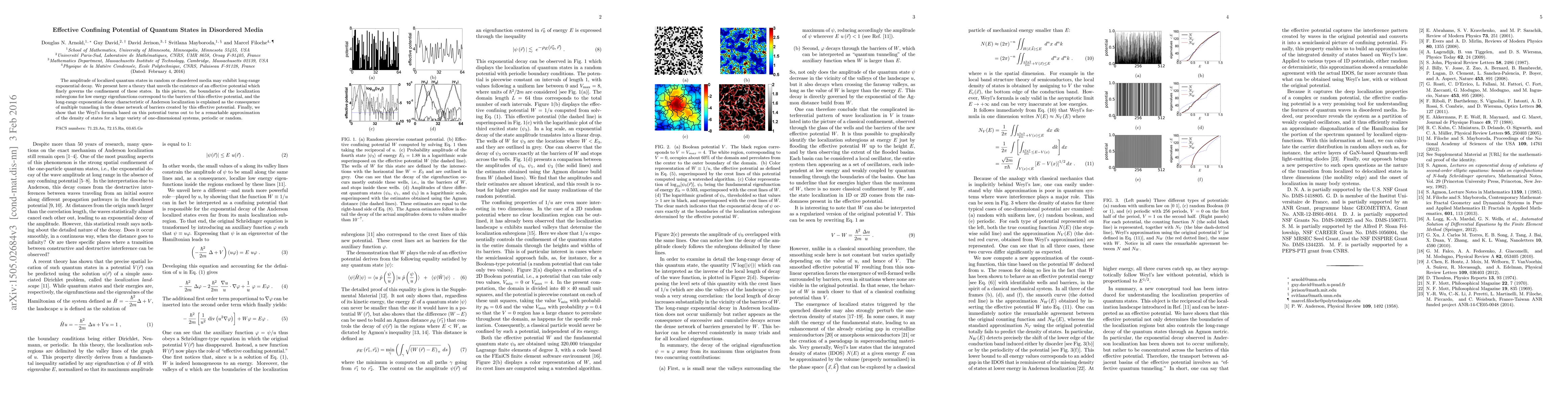 Researchers developed a theory explaining how quantum states in disordered media are confined, revealing an effective potential that governs their behavior. The model accurately approximates the density of states for various systems.