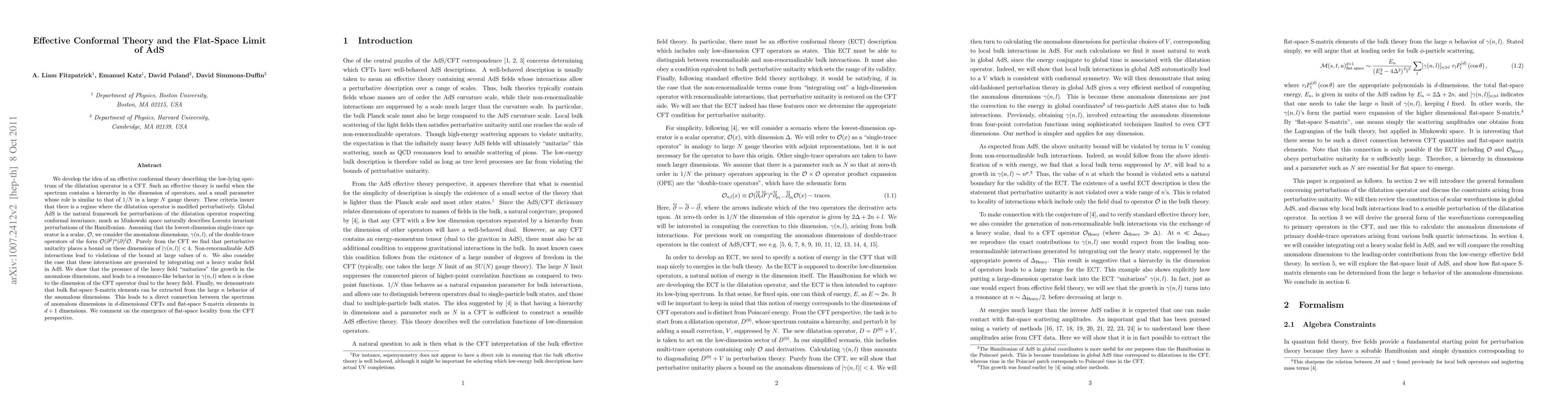 This paper develops an effective conformal theory for the low-lying spectrum of the dilatation operator in a CFT, showing that it can describe the flat-space limit of AdS. It demonstrates how non-renormalizable AdS interactions can be "unitarized" by heavy scalar fields, leading to resonance-like behaviors in anomalous dimensions and a direct link between CFT spectra and flat-space S-matrix elements.