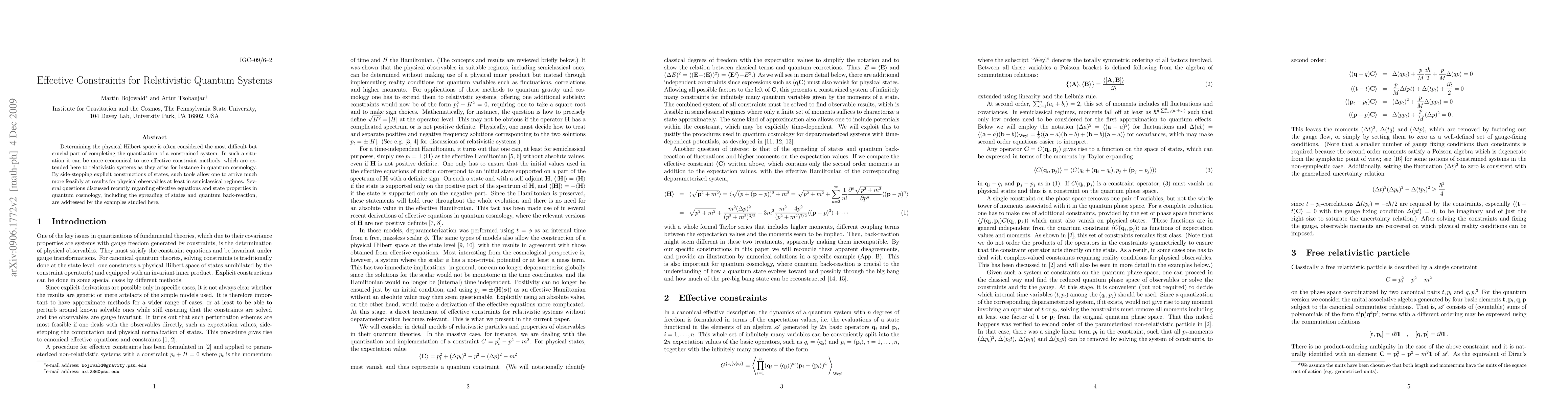 Determining the physical Hilbert space is often considered the most difficult but crucial part of completing the quantization of a constrained system. In such a situation it can be more economical to use effective constraint methods, which are extended here to relativistic systems as they arise for instance in quantum cosmology. By side-stepping explicit constructions of states, such tools allow one to arrive much more feasibly at results for physical observables at least in semiclassical regimes. Several questions discussed recently regarding effective equations and state properties in quantum cosmology, including the spreading of states and quantum back-reaction, are addressed by the examples studied here.