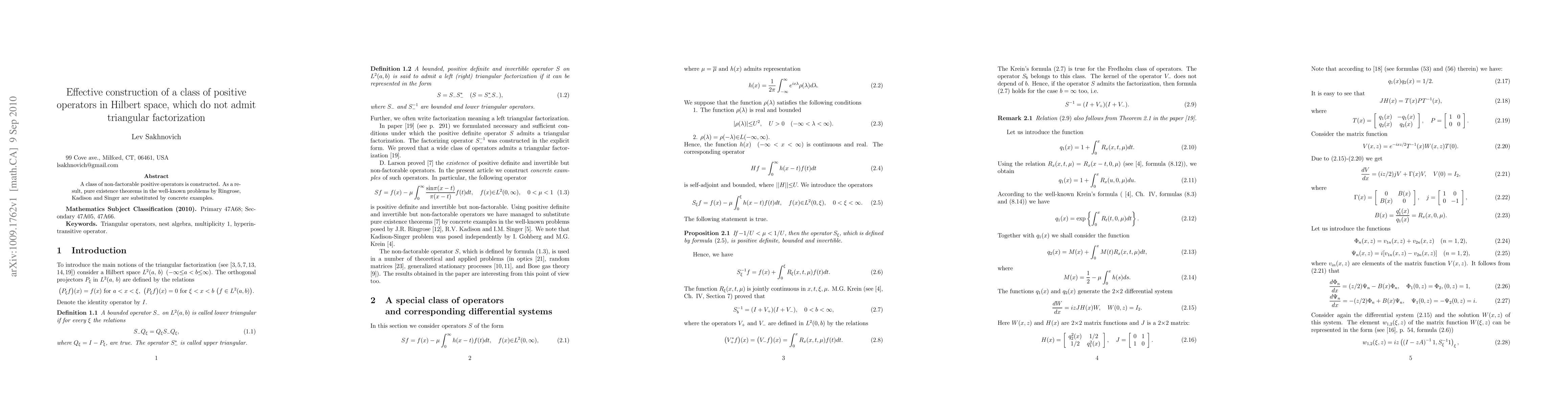 A class of non-factorable positive operators is constructed. As a result, pure existence theorems in the well-known problems by Ringrose, Kadison and Singer are substituted by concrete examples.