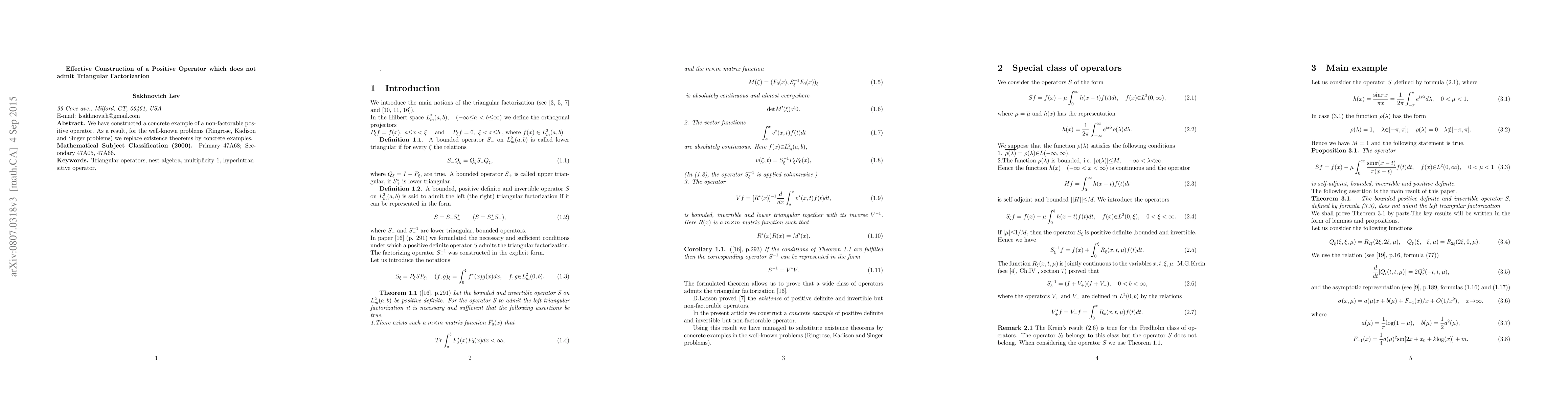 We have constructed a concrete example of a non-factorable positive operator. As a result, for the well-known problems (Ringrose, Kadison and Singer problems) we replace existence theorems by concrete examples.